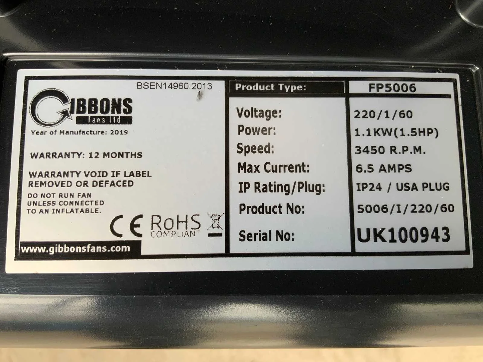 Merk: Gibbons Model: Luchtblower Lengte: 60cm Breedte: 30cm Hoogte: 55cm
