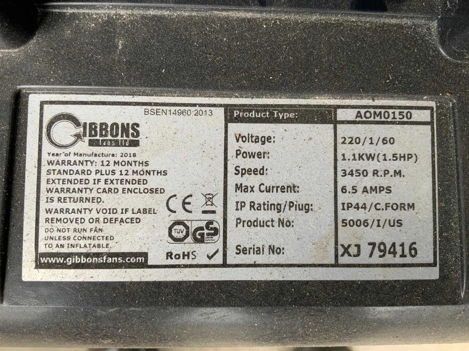 Merk: Gibbons Model: Luchtblower Lengte: 60cm Breedte: 30cm Hoogte: 55cm