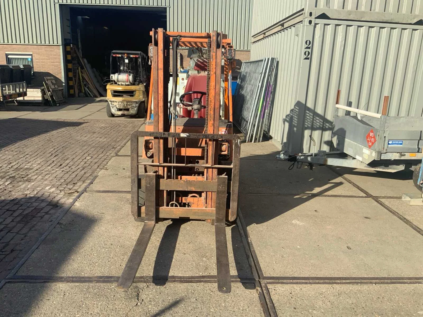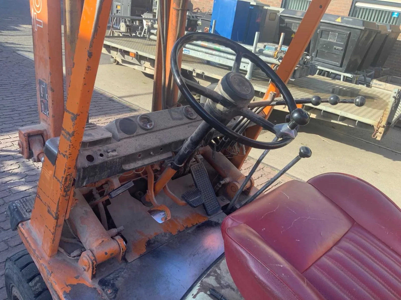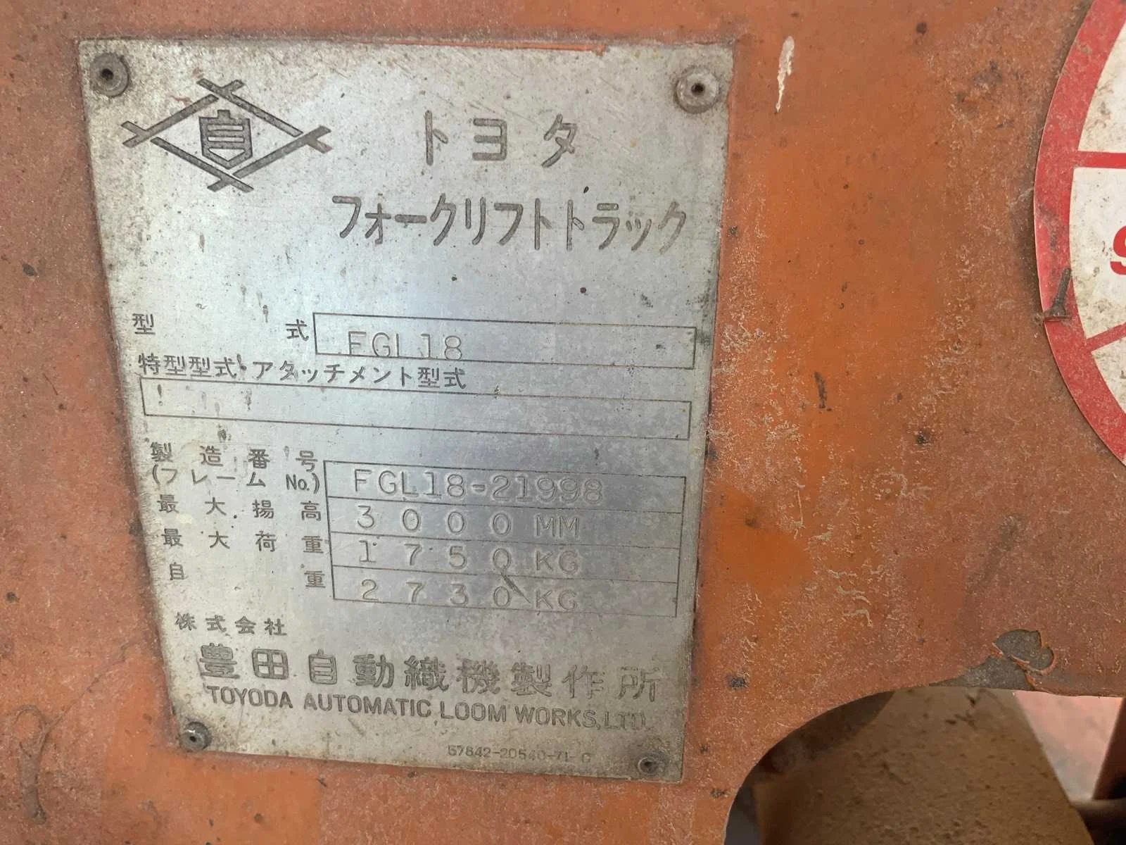Wordt verkocht zonder gasfles Merk: Toyota Type: FGI 18 Brandstof: LPG Mast: Duplex Soort band: Luchtbanden Aantal wielen: 4 Free-lift: true Duplex mast: true Lepellengte: 1070mm Max. hefhoogte: 3000mm Luchtbanden: true Minimale doorrijhoogte: 2000mm Totale afmeting L: 3250mm Totale afmeting Breedte: 1150mm Totale afmeting Hoogte: 1980mm LPG: true