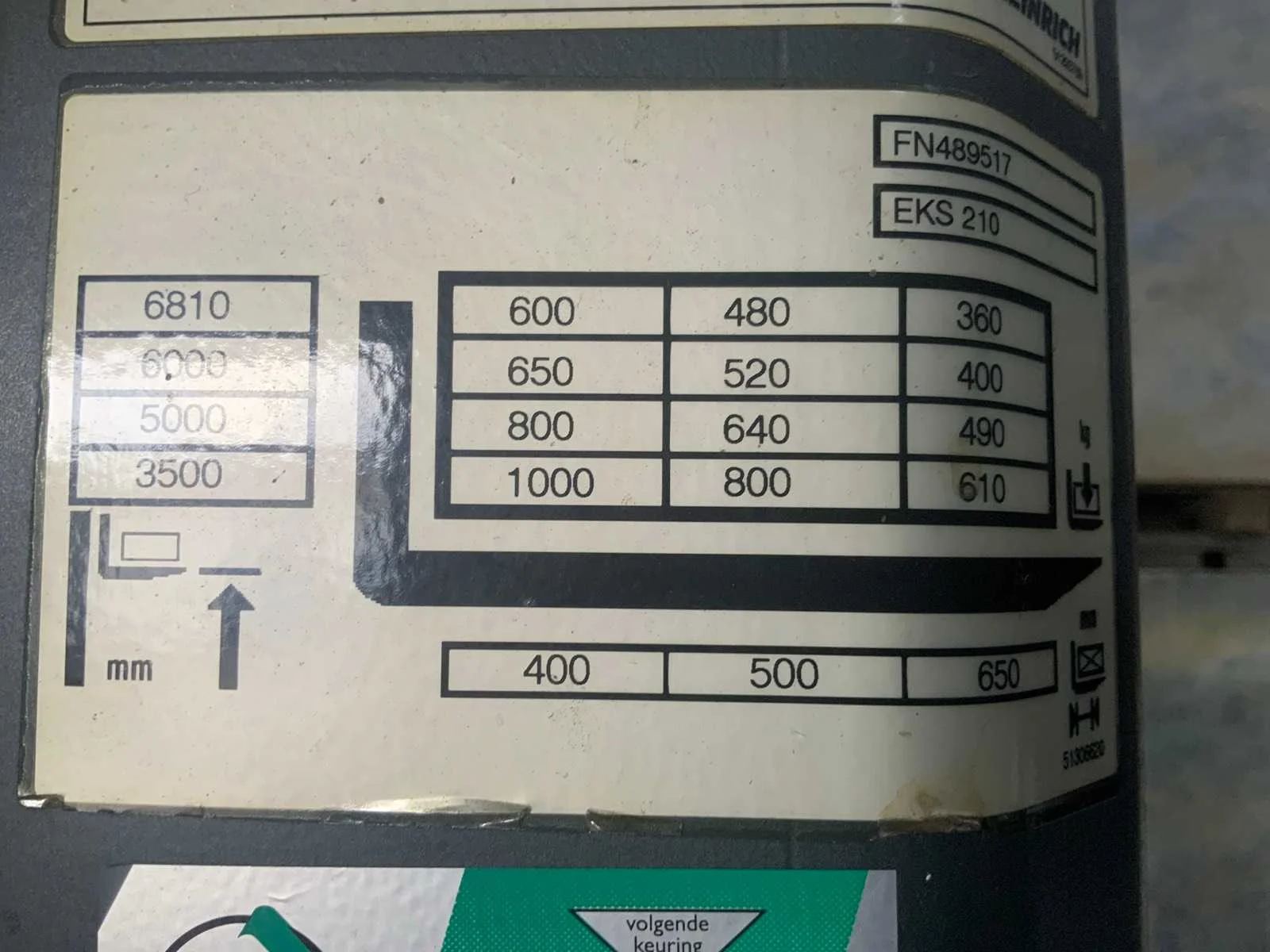 Merk: Jungheinrich Type: EKS210 Accu lader: true Hefvermogen: 1000kg Lepellengte: 1200mm Max. hefhoogte: 6810mm Totale afmeting L: 2900mm Totale afmeting Breedte: 1200mm Totale afmeting Hoogte: 2800mm Elektrisch: true