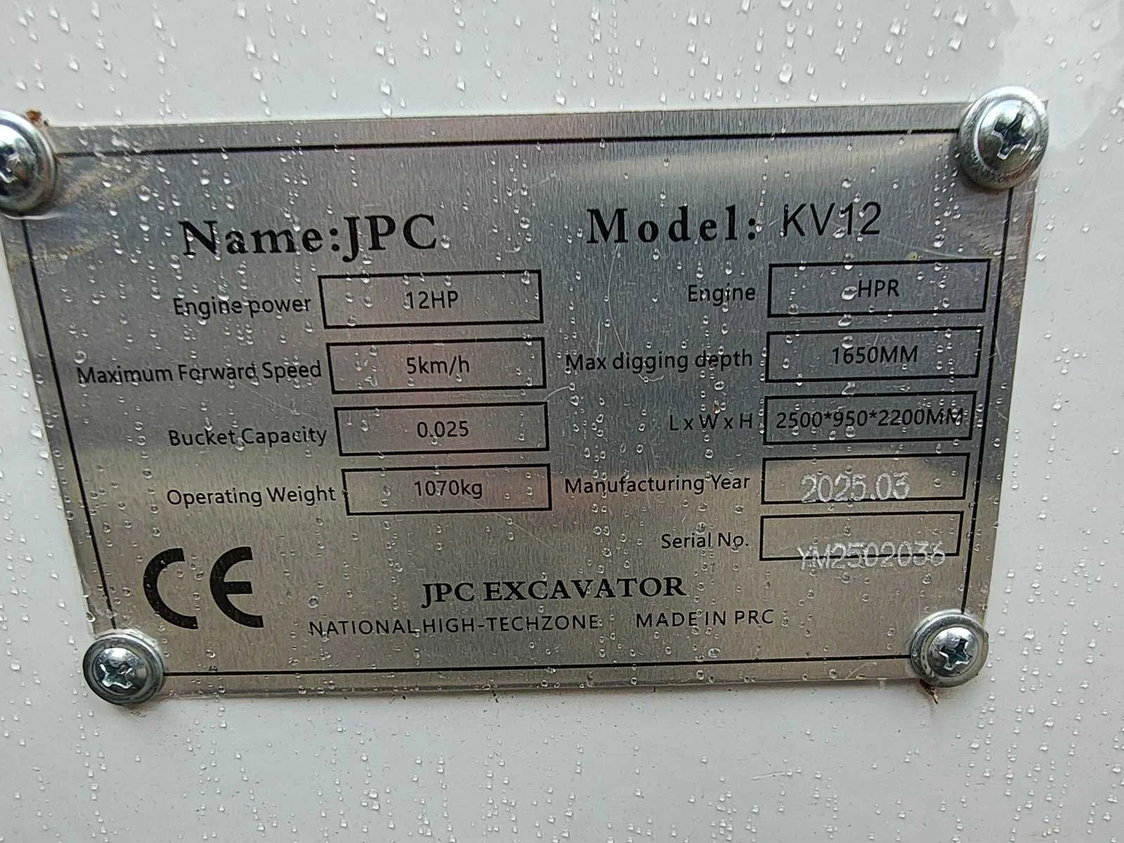 Ongebruikte minigraafmachine Merk: JPC Type: KV12 Bouwjaar: 2025 Merk motor: HPR Motorvermogen (kW): 10kW Aantal cilinders: 1 Eigen gewicht: 1070kg