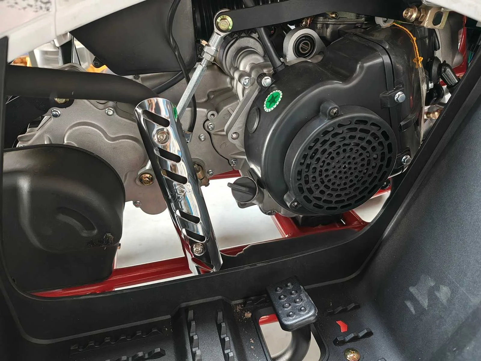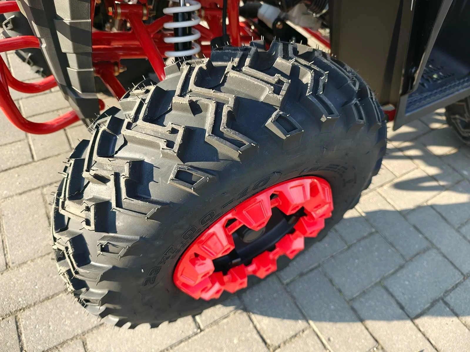 Ongebruikt AIII Commander 200CC Quad, COC aanwezig, geschikt voor openbare weg, Motortype: 200 CC, FNR, CVT, eencilinder, oliekoeling. Carburateur: PD24. Rijden: #530 kettingaandrijving. Ontsteking: Elektrische start. Maximum snelheid: 60 km/h. Tankinhoud: 6L/Staal. FR&RR Wielen: Fr: Stalen velg: 23×7-10" Rr: Stalen velg: 22×10-10" off-road banden. Snelheidsmeter: LCD-scherm. Schokdempers: hydraulische schokdempers. Rem: Fr &; Rr schijfrem. Stuur/Frame: Staal. Achterbrug: staal. Bagagerek: voor en achter (staal). Stuurbescherming: kunststof. Zithoogte: 79 cm. Draagvermogen: 150 kg. GW/ NW: 180 kg / 208 kg. Bodemvrijheid: 16 cm. Product afmetingen: 167 cm x 102 cm x 110 cm. Sleutel. LED dagrij verlichting. Trekoog voor. Trekhaak met 7-polige stekker 12V achter. wordt geleverd in doos. Merk: AIII Model: Commander 200 Gewicht: 180kg Aantal zitplaatsen: 2 Transmissie: Traploos Bouwjaar: 2025 Afgelezen kilometerstand: 0km Brandstof: benzine 4 takt Kleur omschrijving: rood/wit Carrosserie: staal Lengte: 167cm Breedte: 102cm Hoogte: 110cm