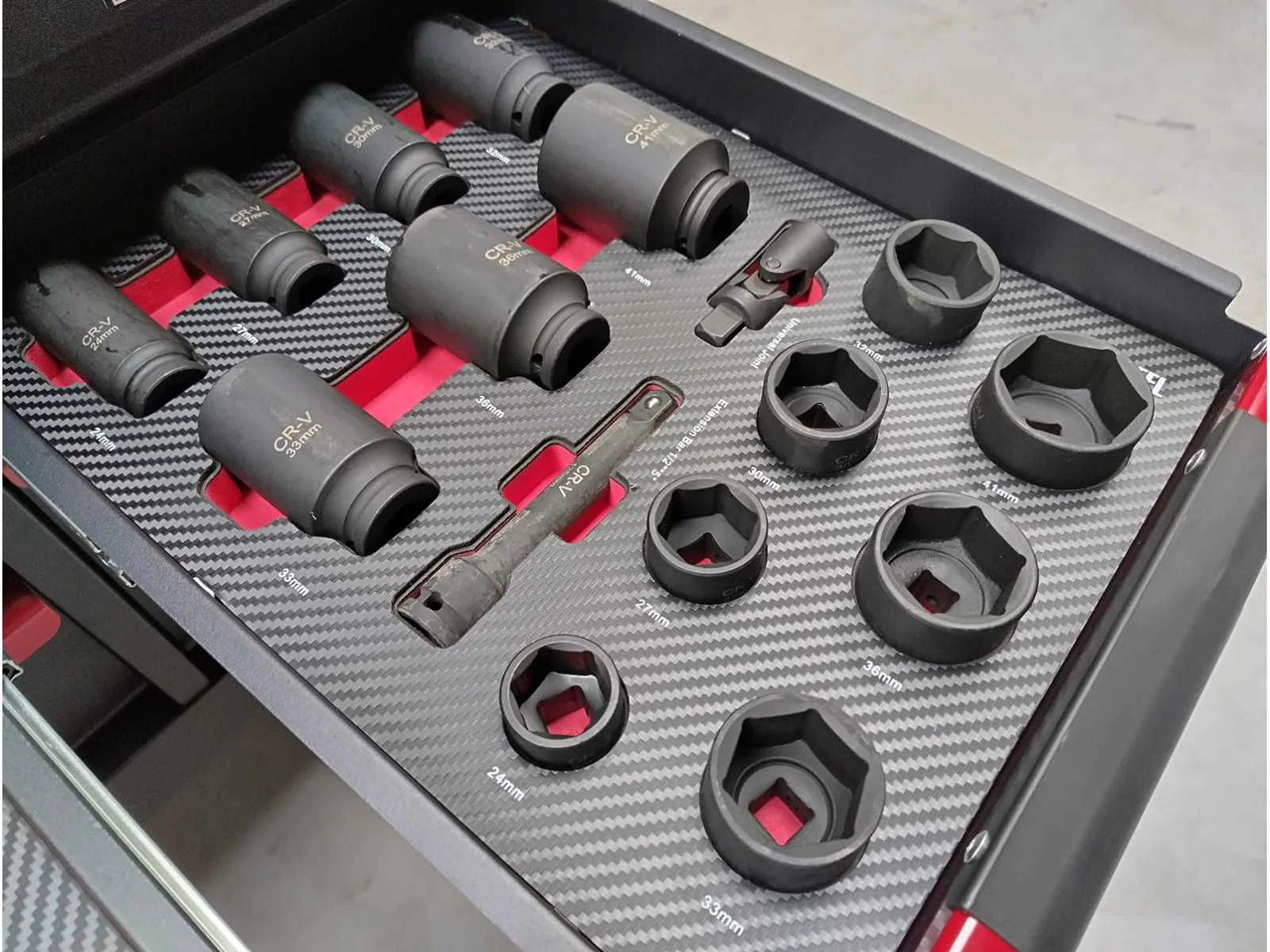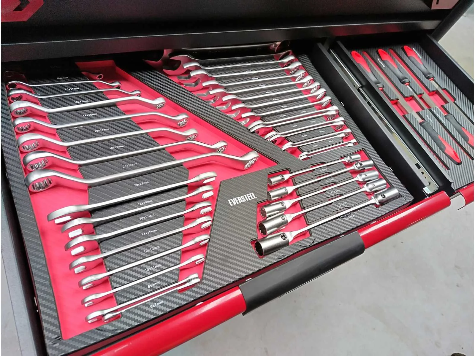 Professionele gereedschapswagen 12 laden 11 gevuld o.a. met krachtdoppenset tot 41mm, ongebruikt in doos Merk: Eversteel Model: 12/11 Heavy Duty