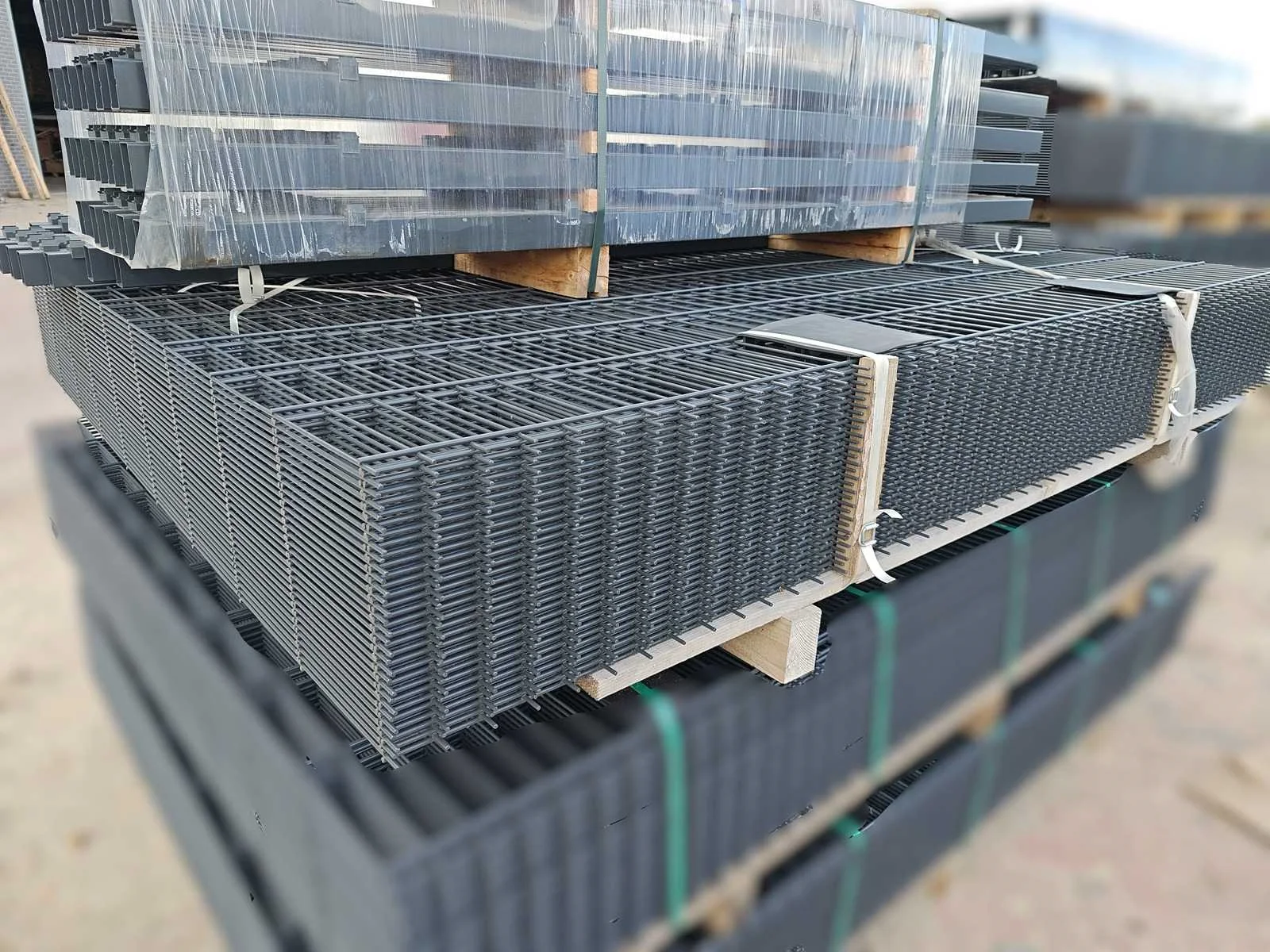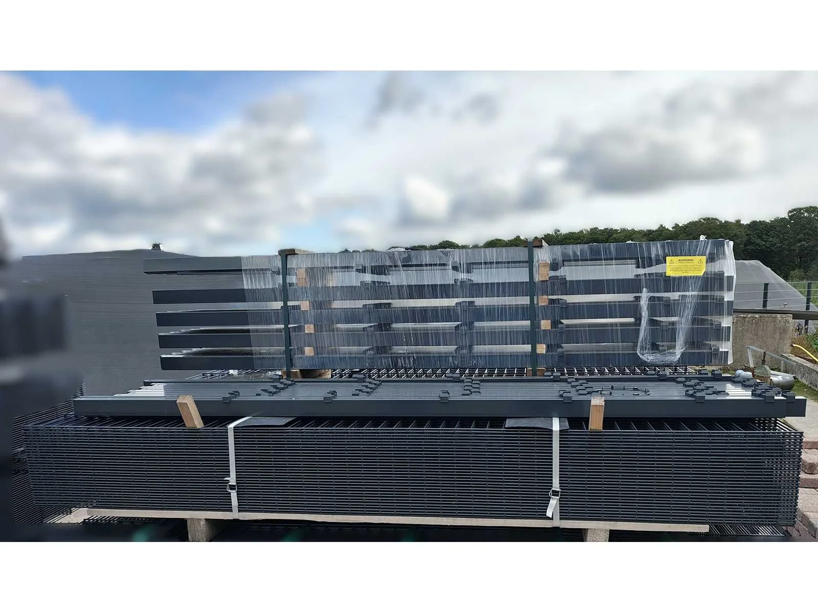 Materiaal: Antraciet Maat: 1830x2500 Lengte: 75m met paal en bevestingsmateriaal Beschrijving: Nieuwe, ongebruikte partij dubbelstaafs hekwerk.
