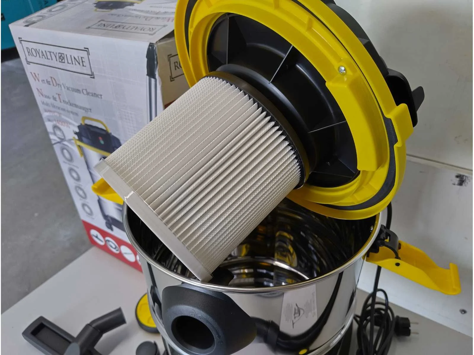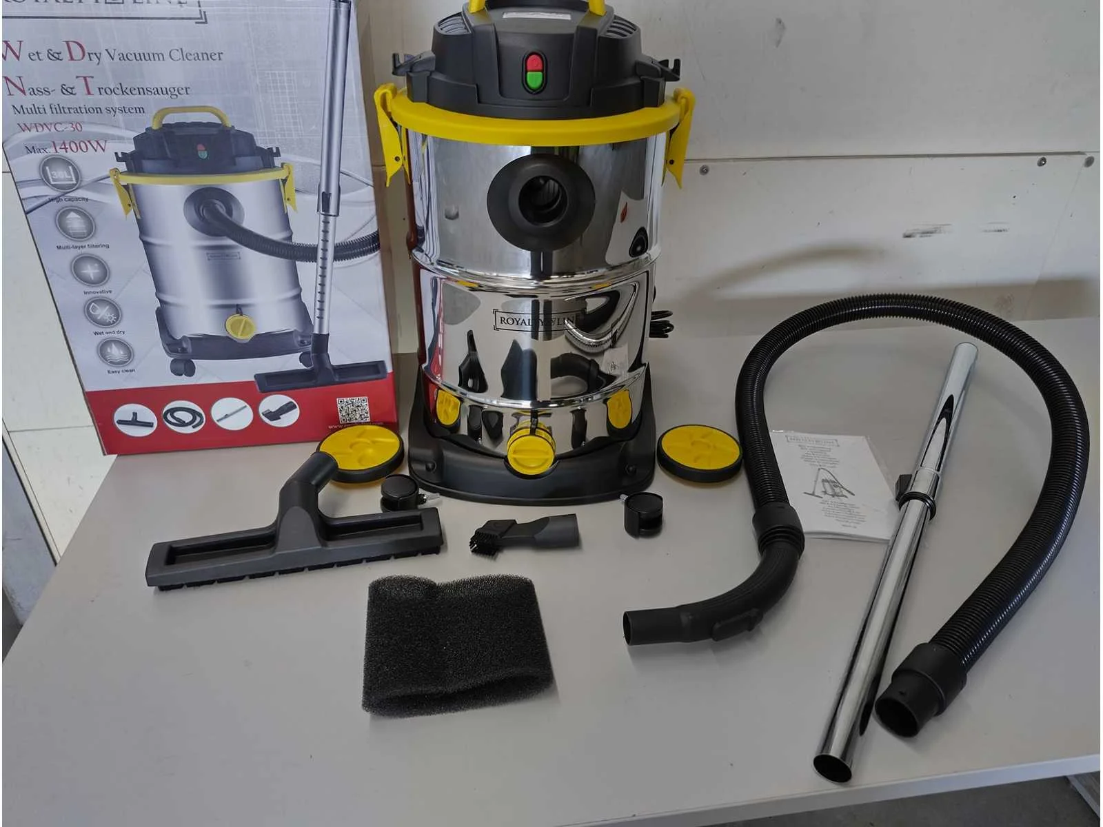 Nat en droogzuiger, ongebruikt in doos Merk: Royalty line Type: WDVC Bouwjaar: 2025 Vermogen: 1200W Zakloos: true Nat/droog zuiger: true Aansluiting: 220V