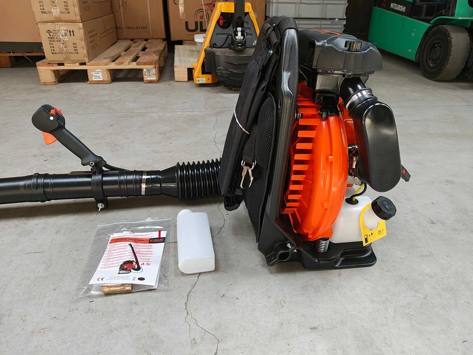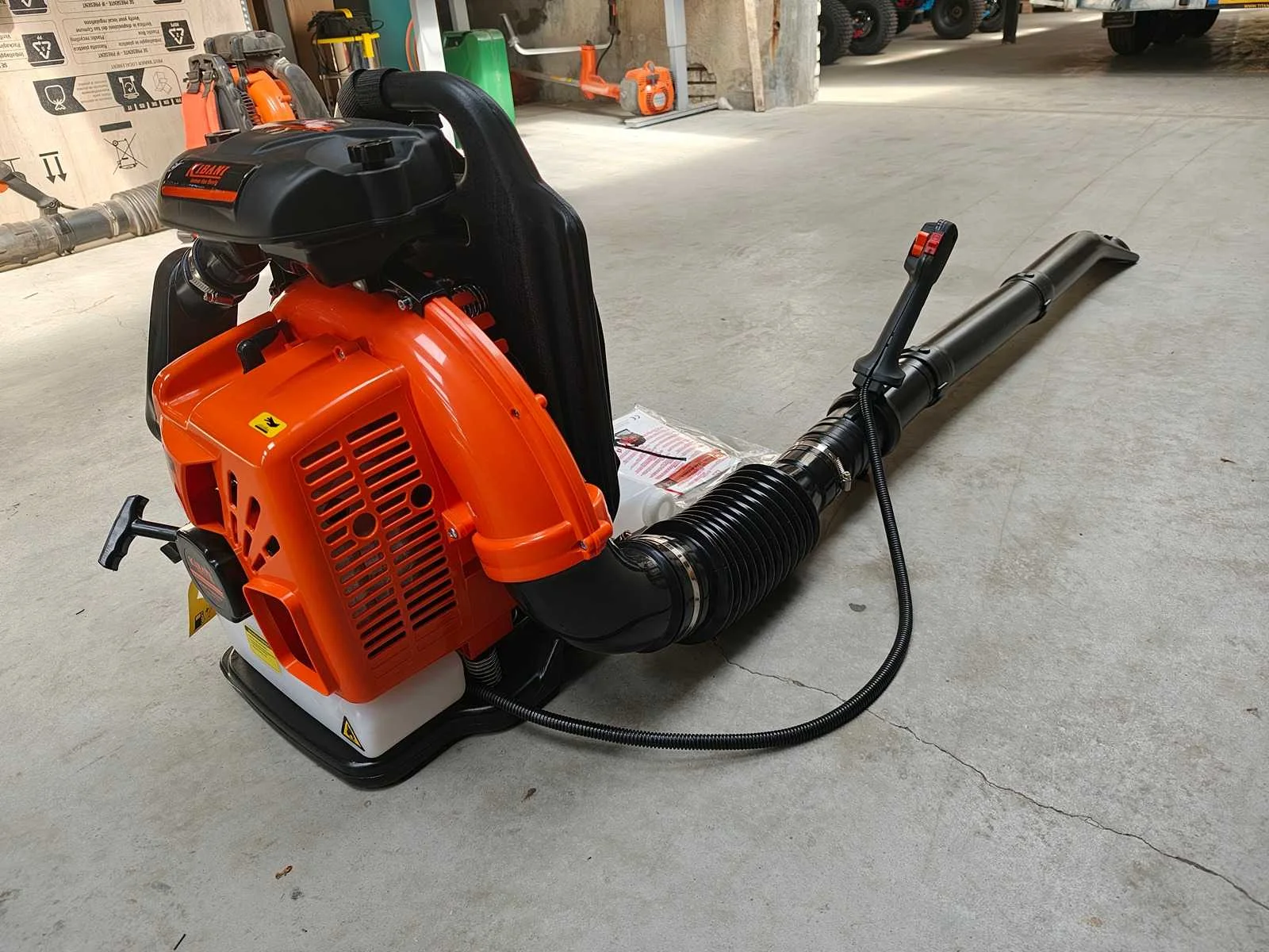 Gewicht 12 kg Afmetingen 52 × 40 × 56 cm cilinderinhoud 63.3 cc Aandrijving benzine Soort Motor 2-takt Vermogen 3.6 hp / 2.7 kW Max. Toerental 6800 toeren p/min Luchtuitstoot 1440 m3 p/uur / 24 m3 p/min Inhoud Brandstoftank 1.6 liter Mengverhouding 1:25 Soort Brandstof Euro 98 Soort Olie 2-takt Geluidniveau 111 dB Keurmerken CE Merk: Kibani Type: KIGFLB63 Bouwjaar: 2025 Brandstofmotor aangedreven: true Eigen gewicht: 12kg Totale afmeting L: 520mm Totale afmeting Breedte: 400mm Totale afmeting Hoogte: 560mm