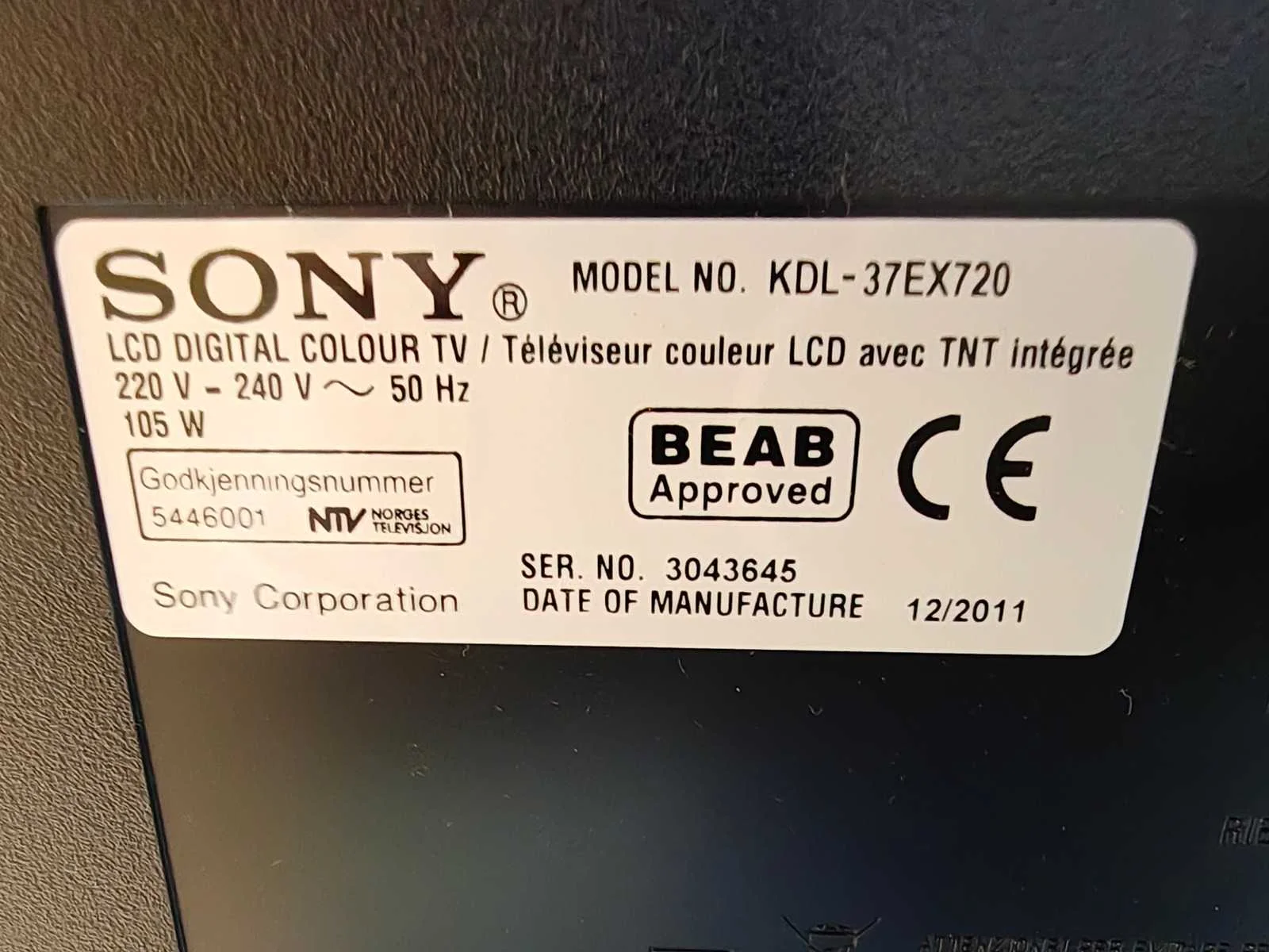 Gebruikte TV. werking oke. LCD Digital color. met afstandsbediening Merk: Sony Model: KDL-37EX720 HDMI: 3