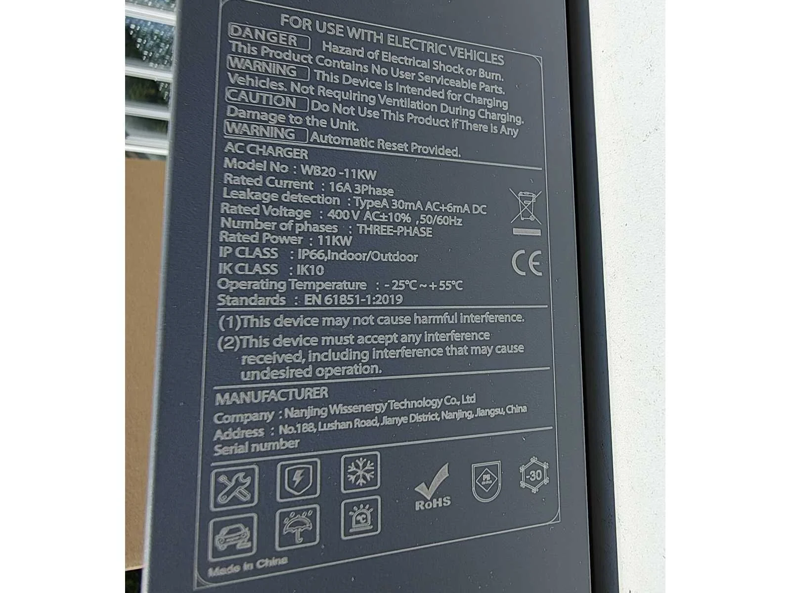 3 phase laadwandbox 11 kW max. vermogen instelbaar van 5 tot 11 KW vaste laadkabel, universele stekker Merk: Teskee Model: WB-20-11 Maximale laadsnelheid: 11kW Vaste oplaadkabel: true