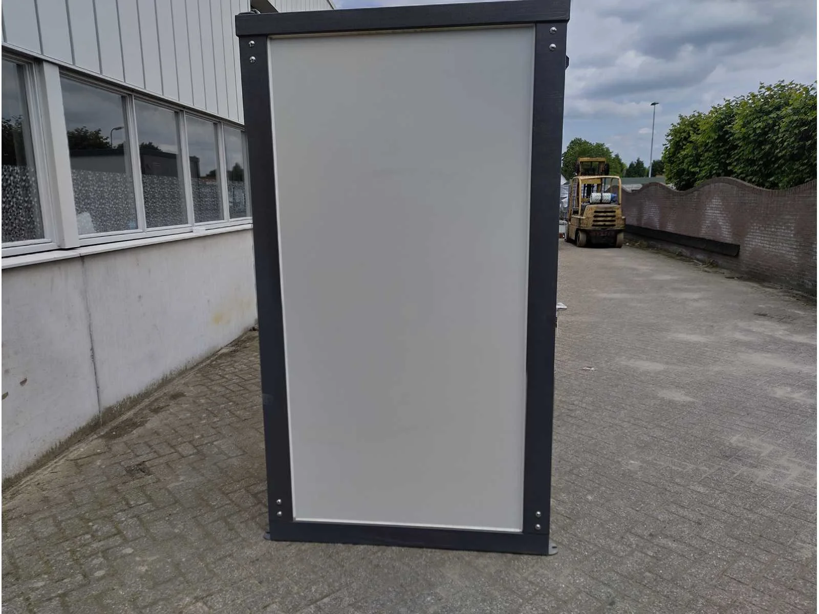 Sanitair unit met 1 toilet, wasbak ventilator, achterzijde voorzien van aansluitingen, 220 volt verlichting Merk: Eversteel Type: enkel Bouwjaar: 2024 Afmeting l: 1200mm Afmeting b: 1400mm Afmeting h: 2600mm Aantal toiletten: 1 Aantal wastafels: 1 Eigen gewicht: 750kg
