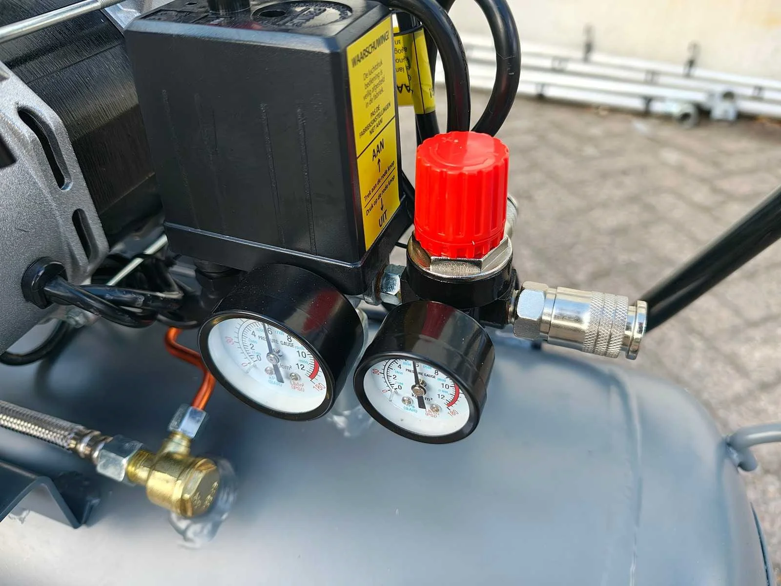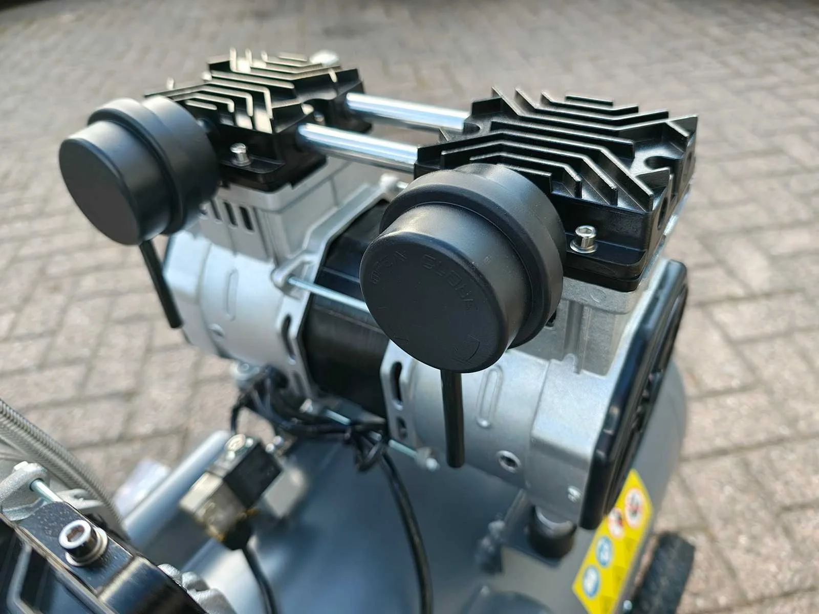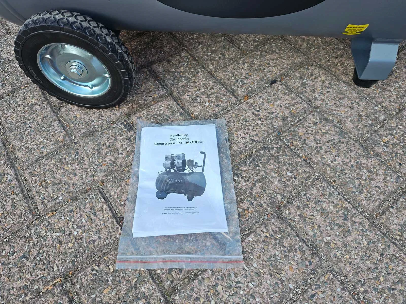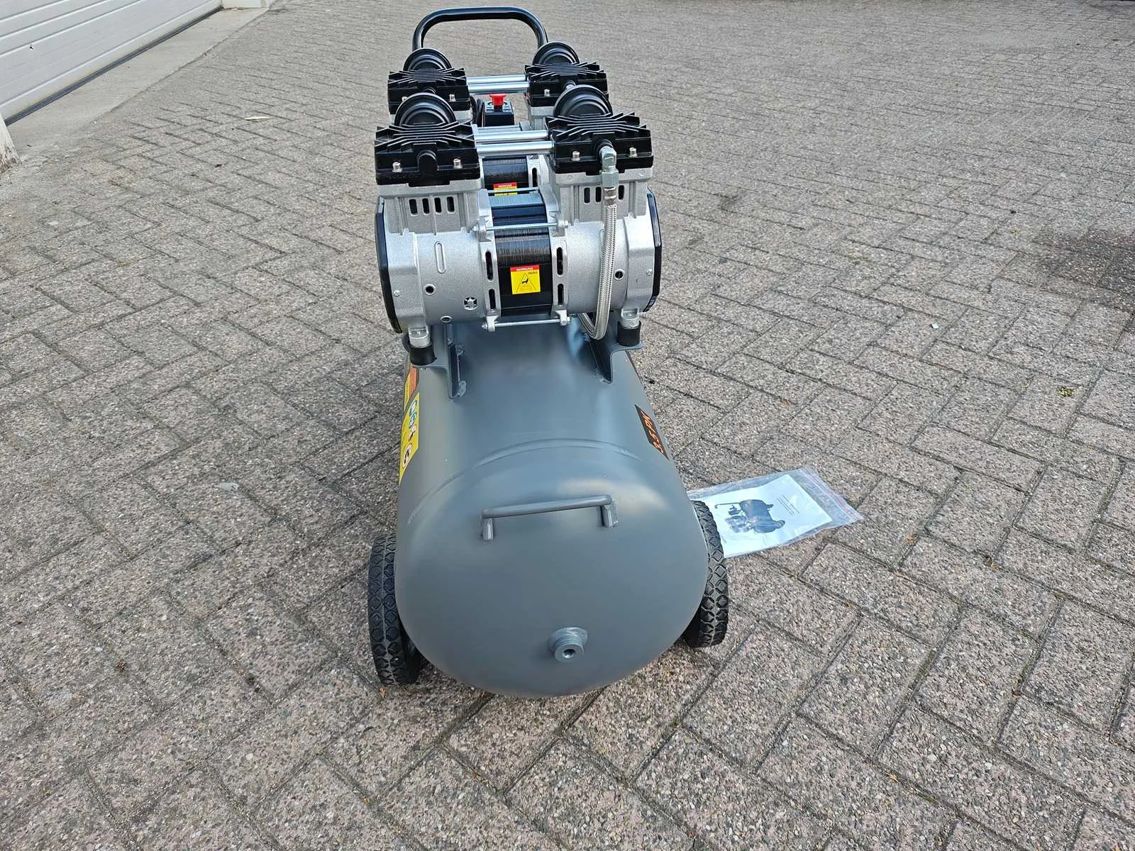 Ongebruikte olievrije geluidsarme 100 liter compressor, 65 dB Merk: Kibani Capaciteit.: 8bar Luchtstroom: 480l/min Vermogen: 2.6kW Buffertank inhoud: 100l Aansluiting: 220V