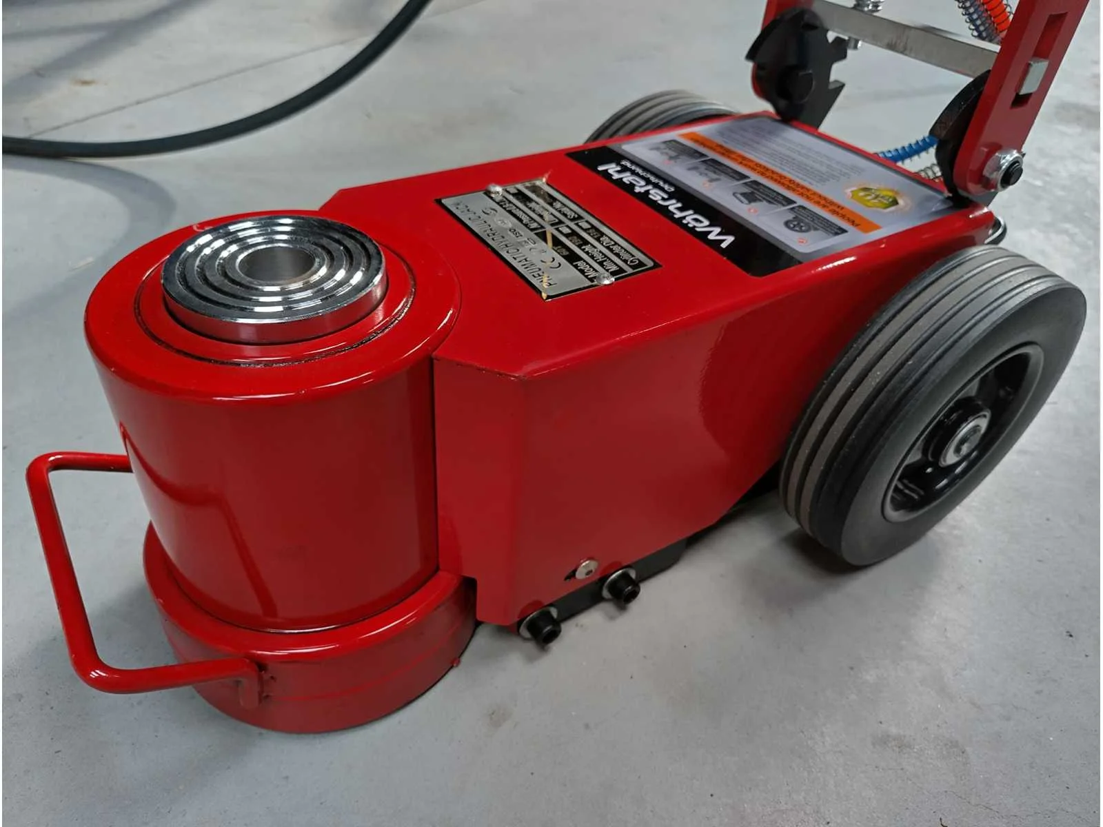 Telescopische garagekrik pneumatisch bediend en hydraulisch aangedreven max 60 ton. min hoogte 190mm hefhoogtebereik 190-400mm. 2 extra adapters, ongebruikt Bouwjaar: 2025 Capaciteit.: 60t Eigen gewicht: 45kg