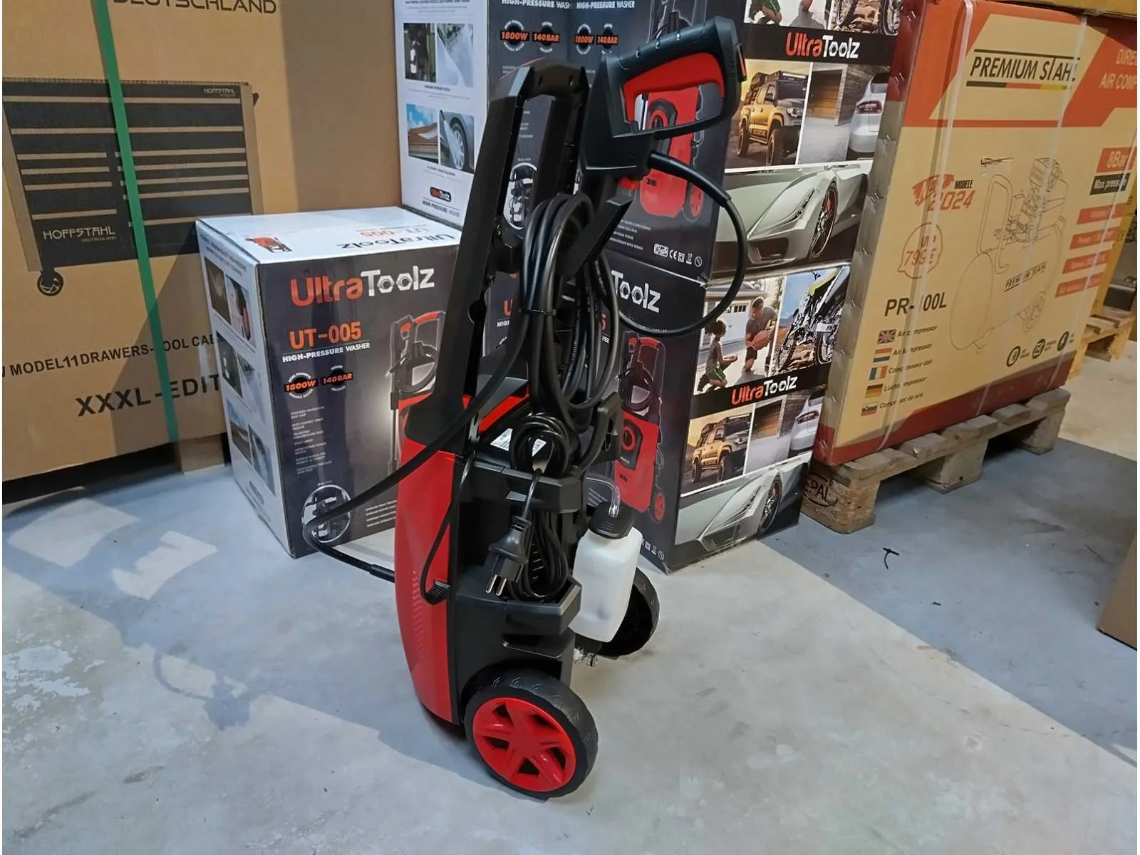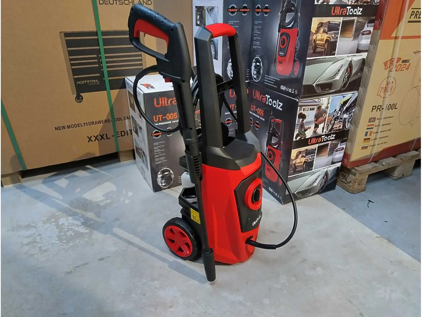 230 volt, 1800 watt, 140 bar max, 5.5L/min Merk: Ultra Type: UT-005 Bouwjaar: 2025 Max. druk: 140bar Vermogen: 1800 Maximale wateropbrengst: 5.5