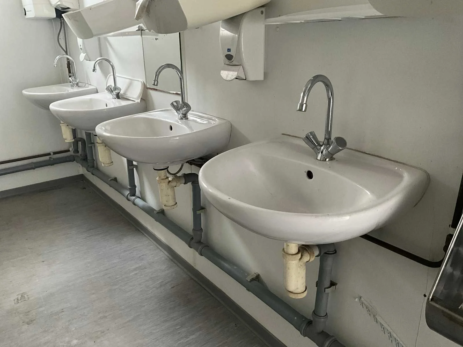 Voorzien van schakelkast; boiler; verlichting; verwarming; RVS urinoir; spiegels en papierrolhouders; Koper dient zelf voor transportmiddelen te zorgen om dit kavel te verladen. Merk: CONTAINEX Type: 20 ft. Afmeting l: 6050mm Afmeting b: 3000mm Afmeting h: 2800mm Aantal ramen: 1 Aantal toiletten: 6 Aantal wastafels: 4 Totale afmeting L: 6200mm Totale afmeting Breedte: 3000mm Totale afmeting Hoogte: 2800mm