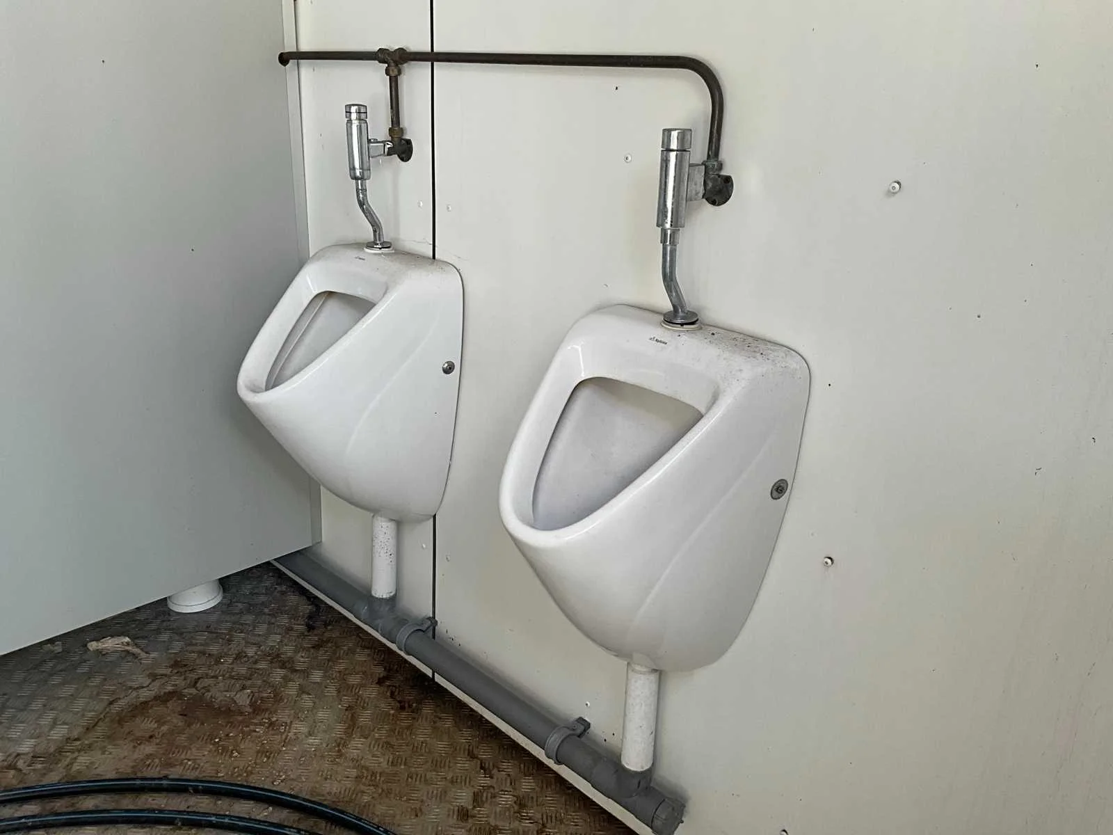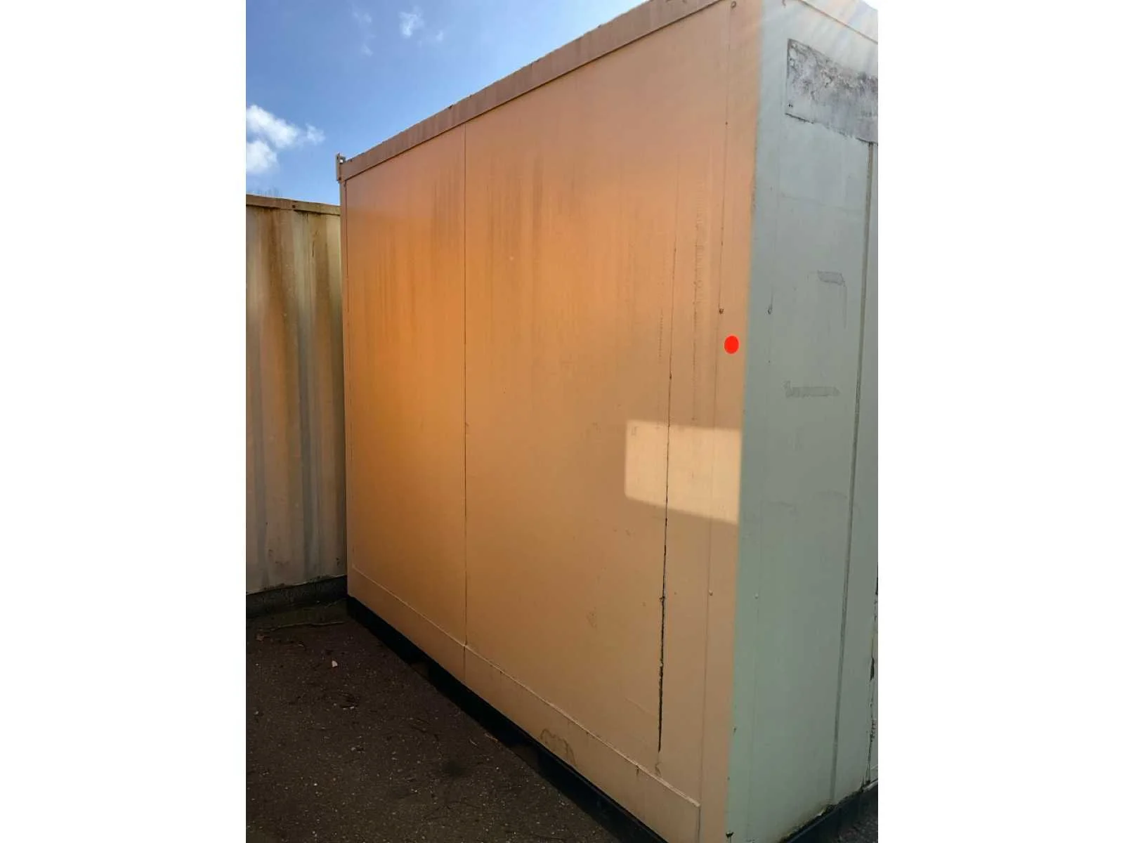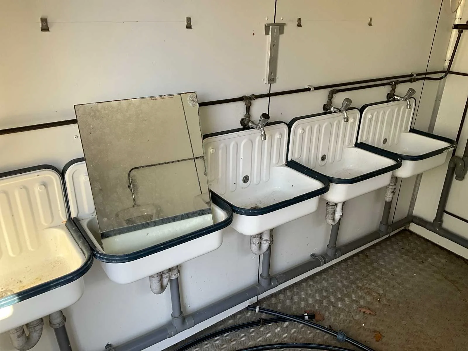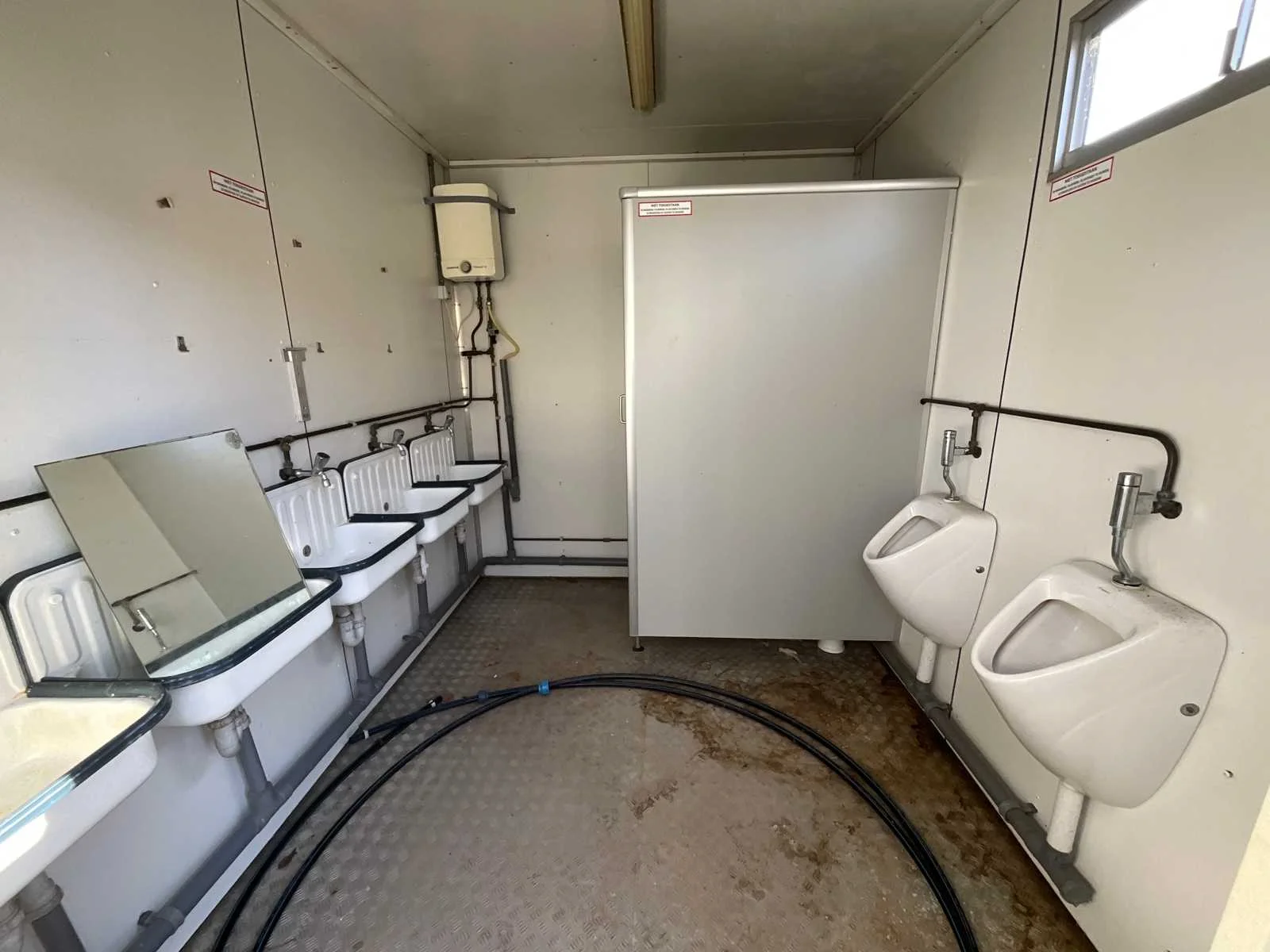 Voorzien van loopdeur; boiler; schakelkast; verlichting; verwarming; 2x urinoir; spiegel en papierrolhouder; Koper dient zelf voor transportmiddelen te zorgen om dit kavel te verladen. Merk: R&B Aantal ramen: 1 Aantal toiletten: 1 Aantal wastafels: 5 Totale afmeting L: 3000mm Totale afmeting Breedte: 2400mm Totale afmeting Hoogte: 2800mm