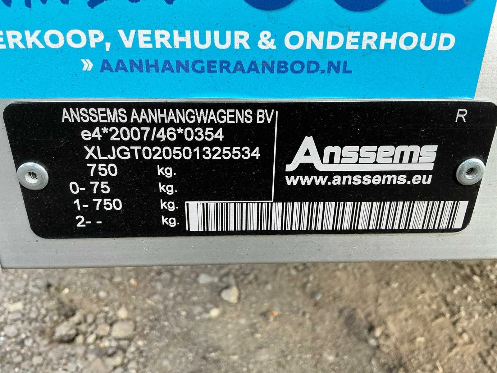 Ongebruikt Merk: Anssems Chassisnummer: XLJGT020501325534 Aantal assen: 1 Laadbak afmeting l: 250cm Laadbak afmeting b: 126cm Laadvermogen: 750kg Hoogte: 120cm Lengte: 350cm Breedte: 170cm Zelf rijdend exporteren: Yes