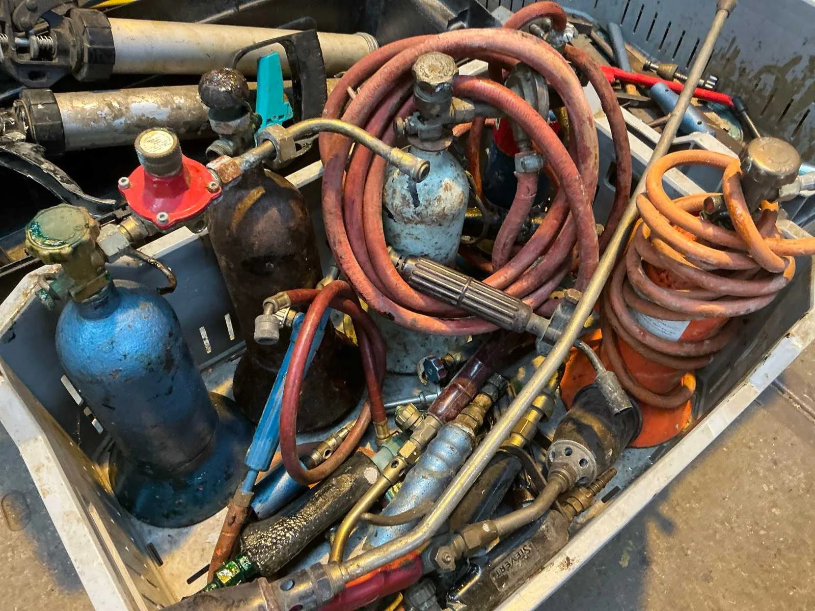 Bestaande uit gasbranders, kit spuiten en divers handgereedschap