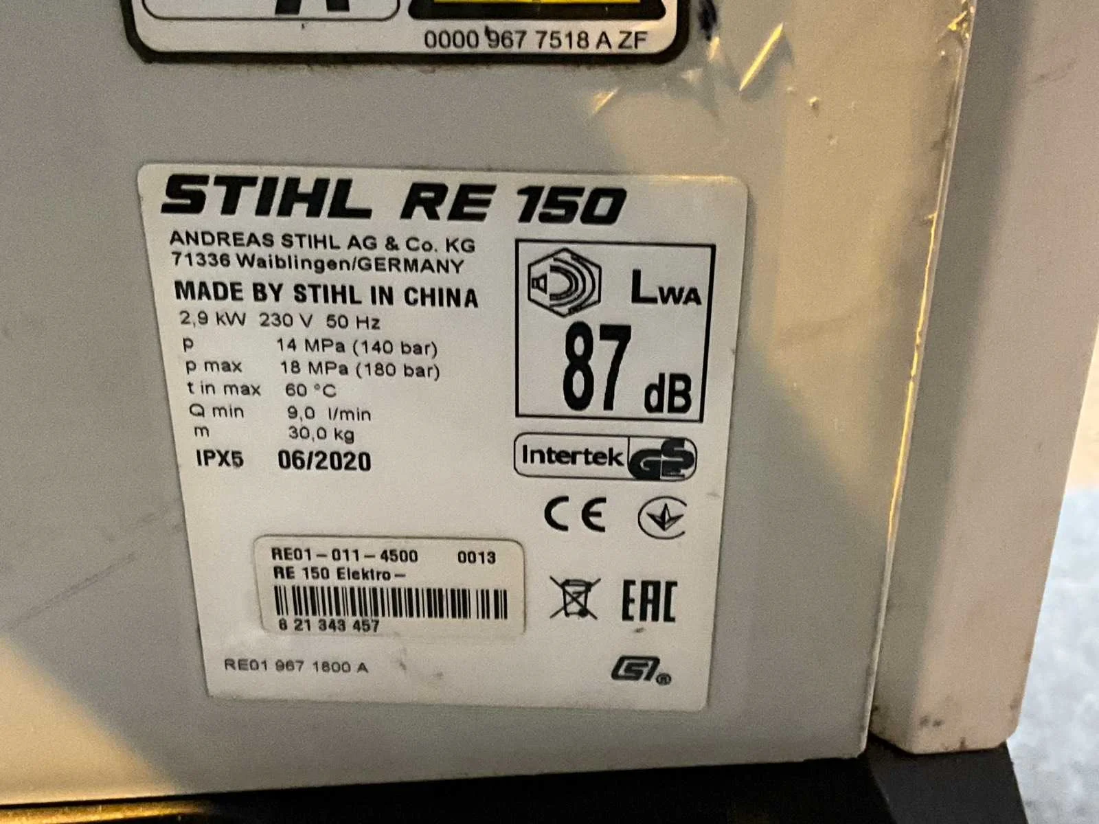 Merk: Stihl Type: RE 150 Bouwjaar: 2020 Max. druk: 18bar Vermogen: 2.9 Gewicht: 30kg Lengte: 40cm Breedte: 35cm Hoogte: 110cm