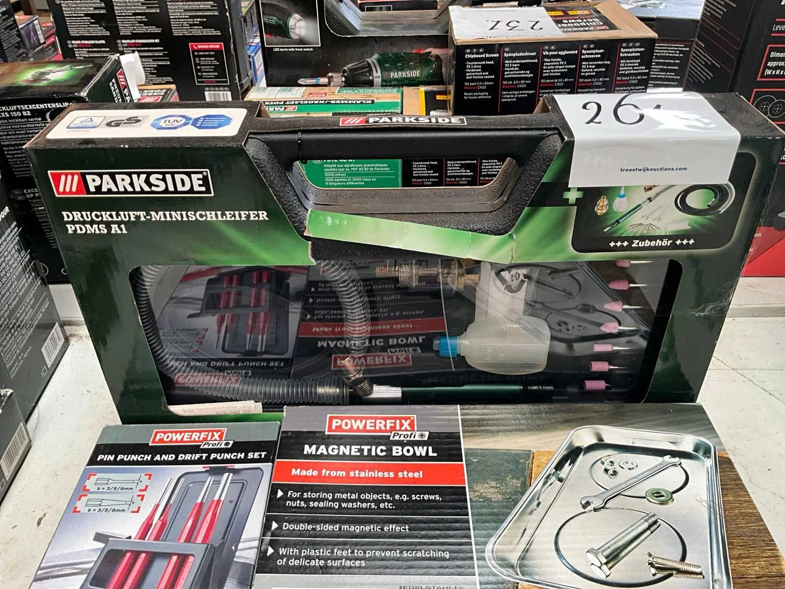 Inclusief ponsset; magnetische schaal en hoekboorkop Merk: Parkside Type: PDMS A1
