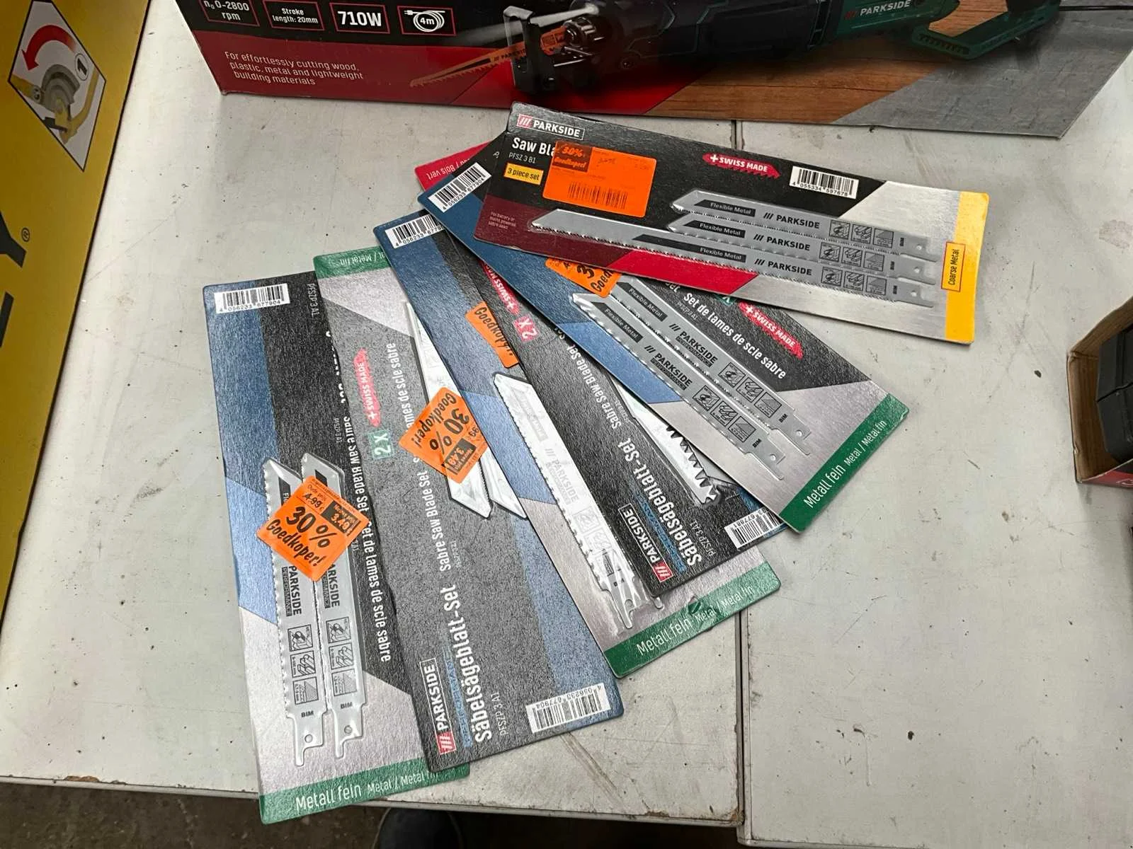 Ongebruikt. Inclusief reserve zaagjes Merk: Parkside Model: PFS 710 D3 Spanning: 230 Met koffer: true Vermogen: 710
