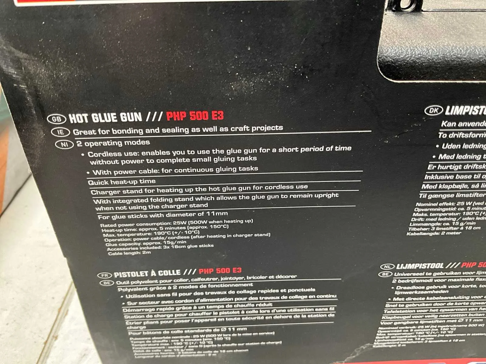 Merk: Parkside Type: PHP 500 E3 Aansluiting: 230V Met koffer: true