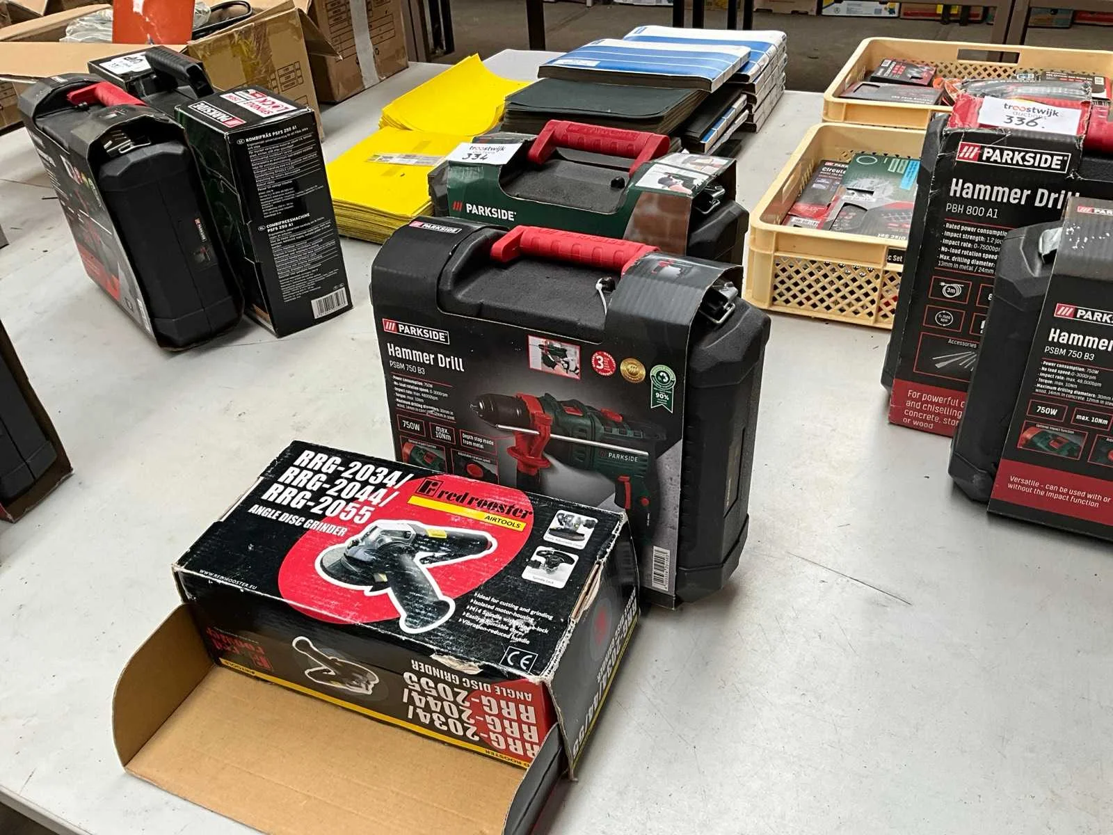 2 x PSBM 750 B3 boormachine en 1 x Red Rooster pneumatische haakse slijper