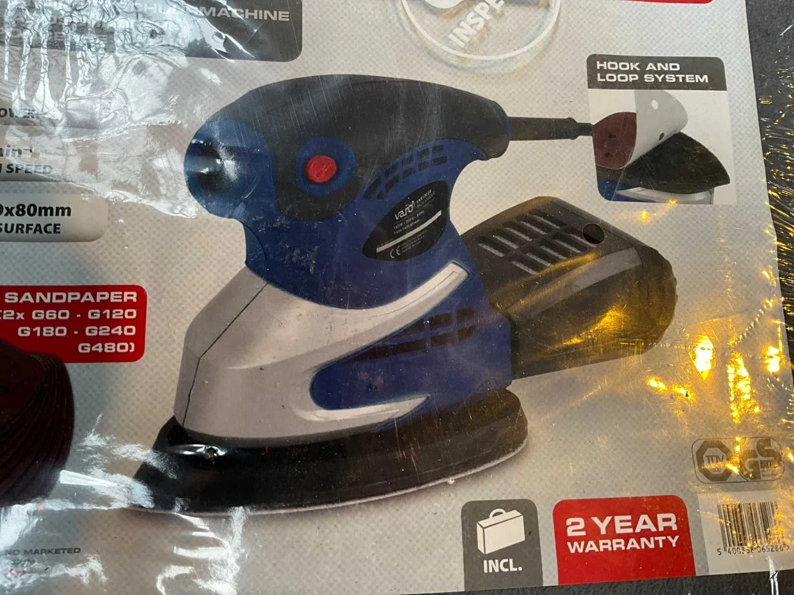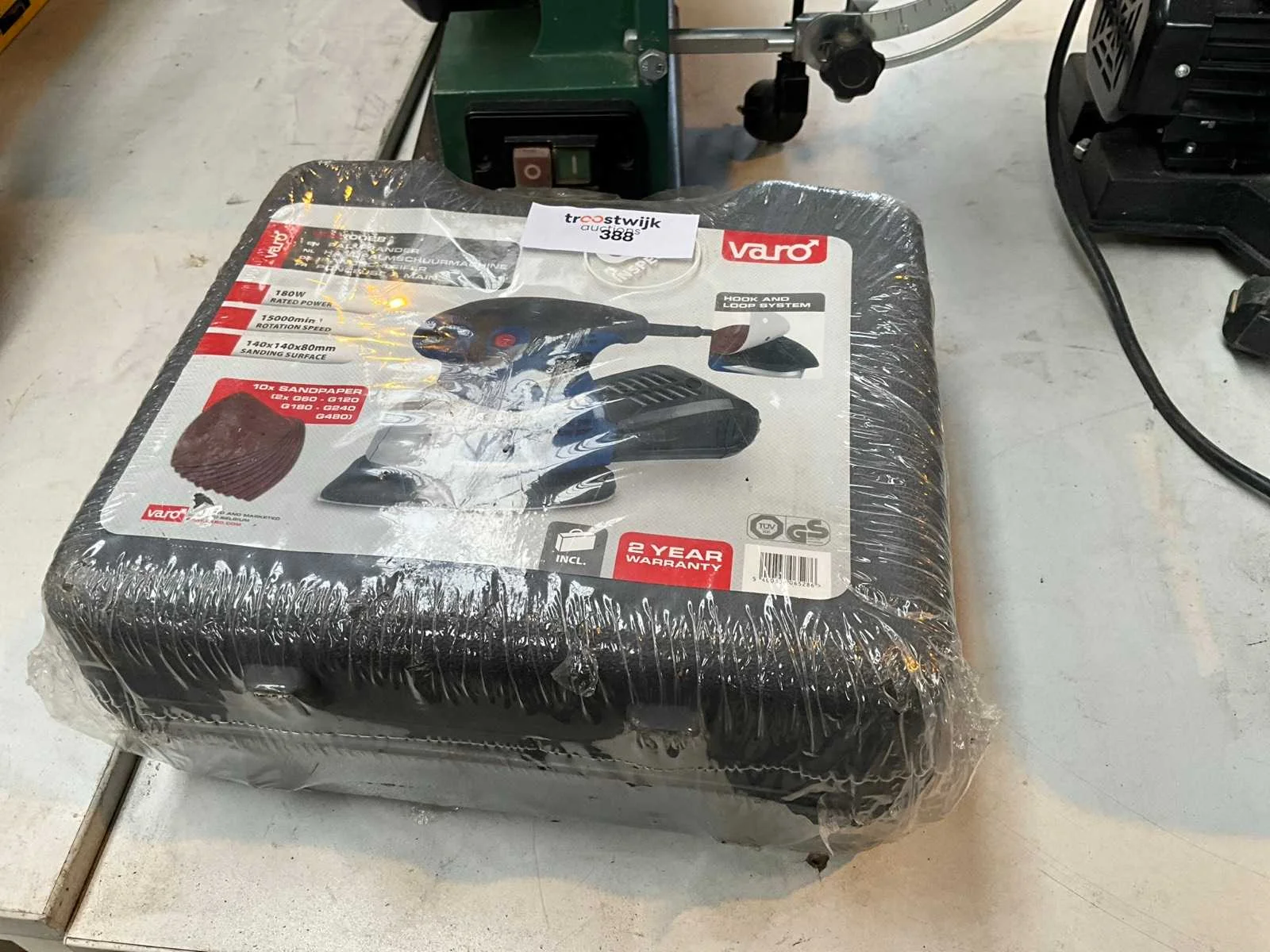 Merk: Varo Type: VAR10028 Deltaschuurmachine: true Aansluiting: 230V Met koffer: true