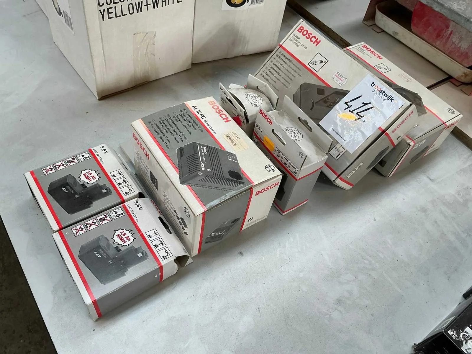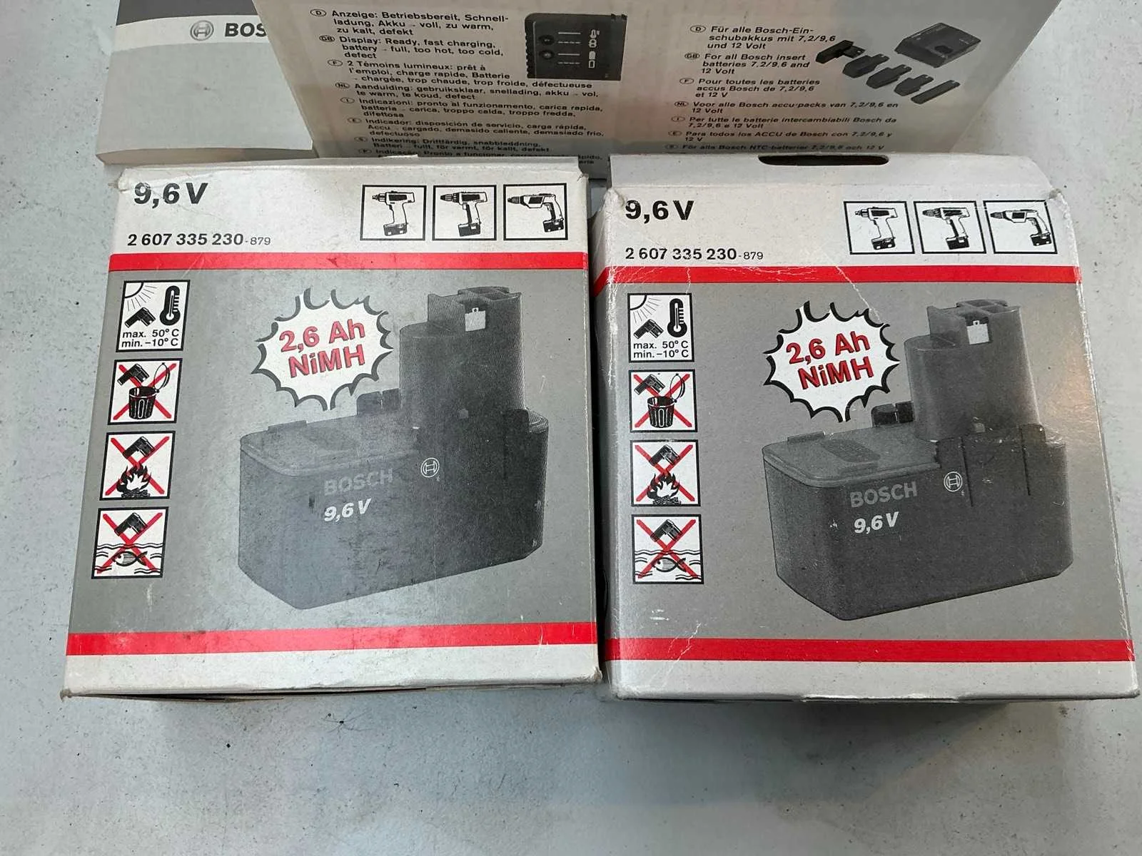 Bosch lader AL12FC, 4x accu 9,6V ; 2x Bosch PVS280 schuurmachine subframe Aantal accu's: 4 Accu lader: true Schuurmachine: true