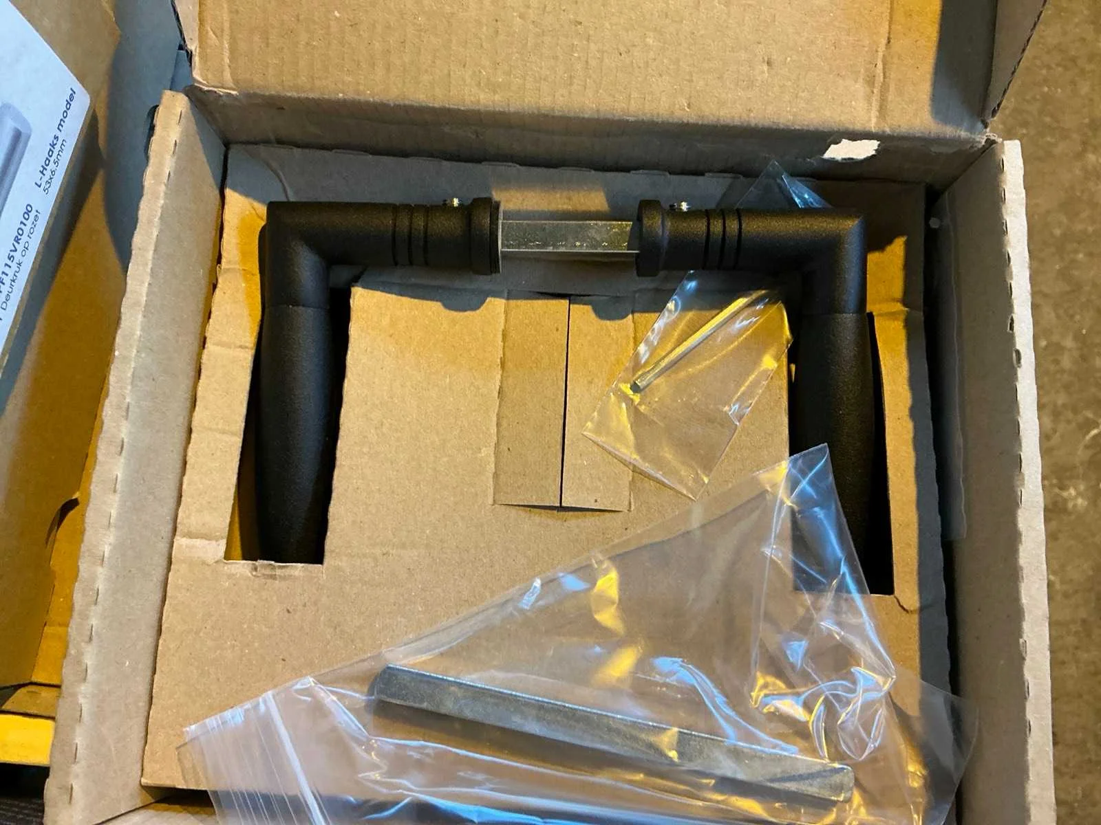 Bestaande uit diverse deurkrukken, klavierkastslot en scharnieren