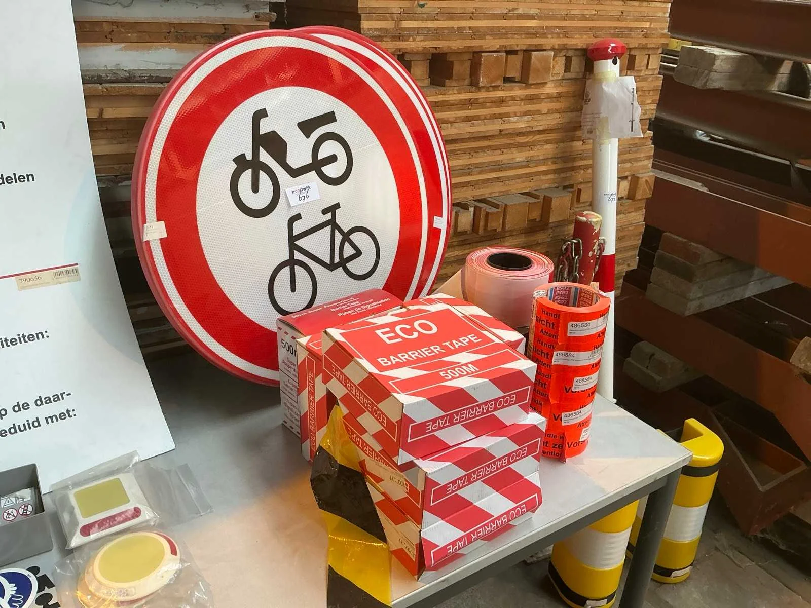 Afzetlint en verkeersbord