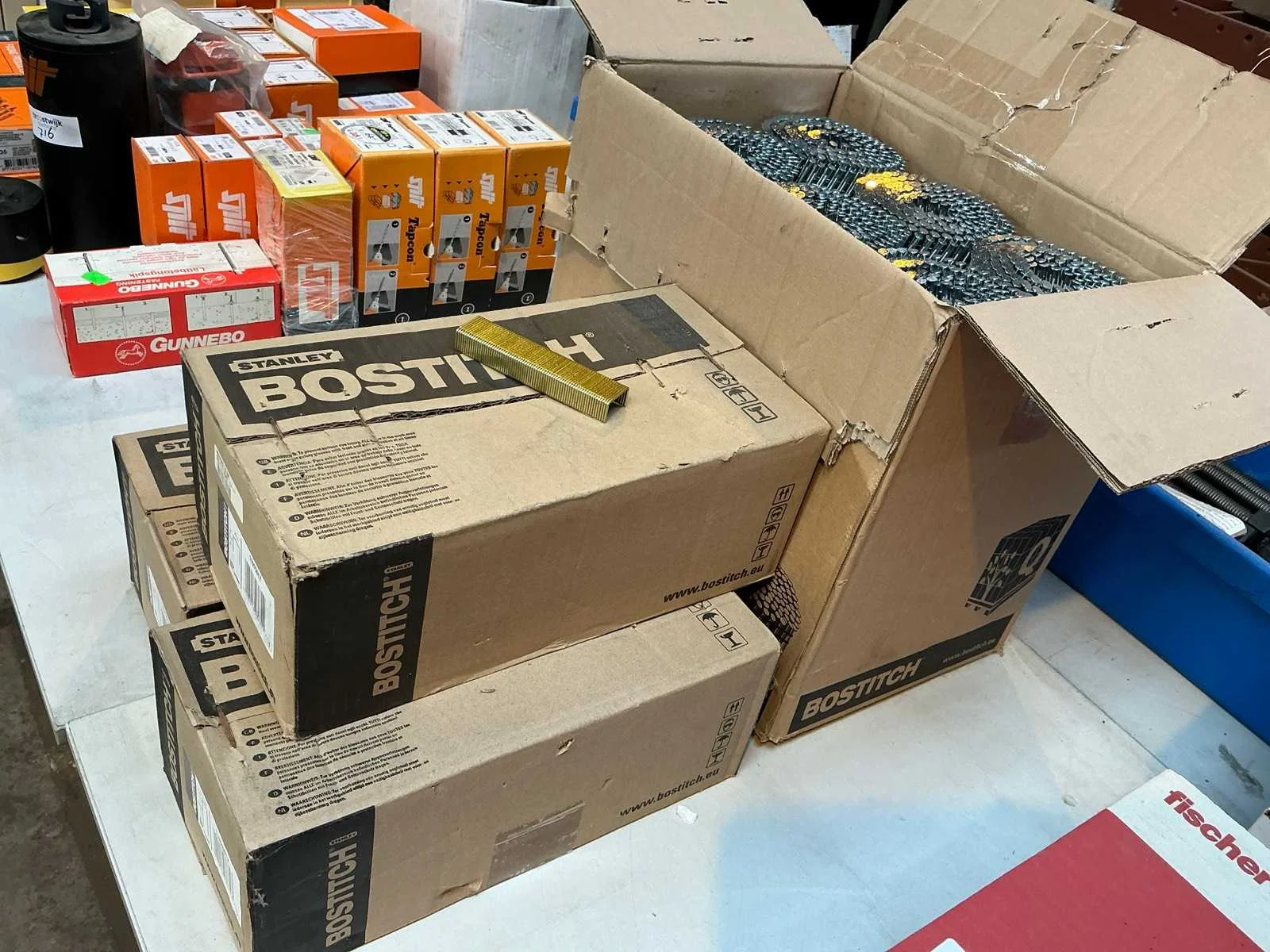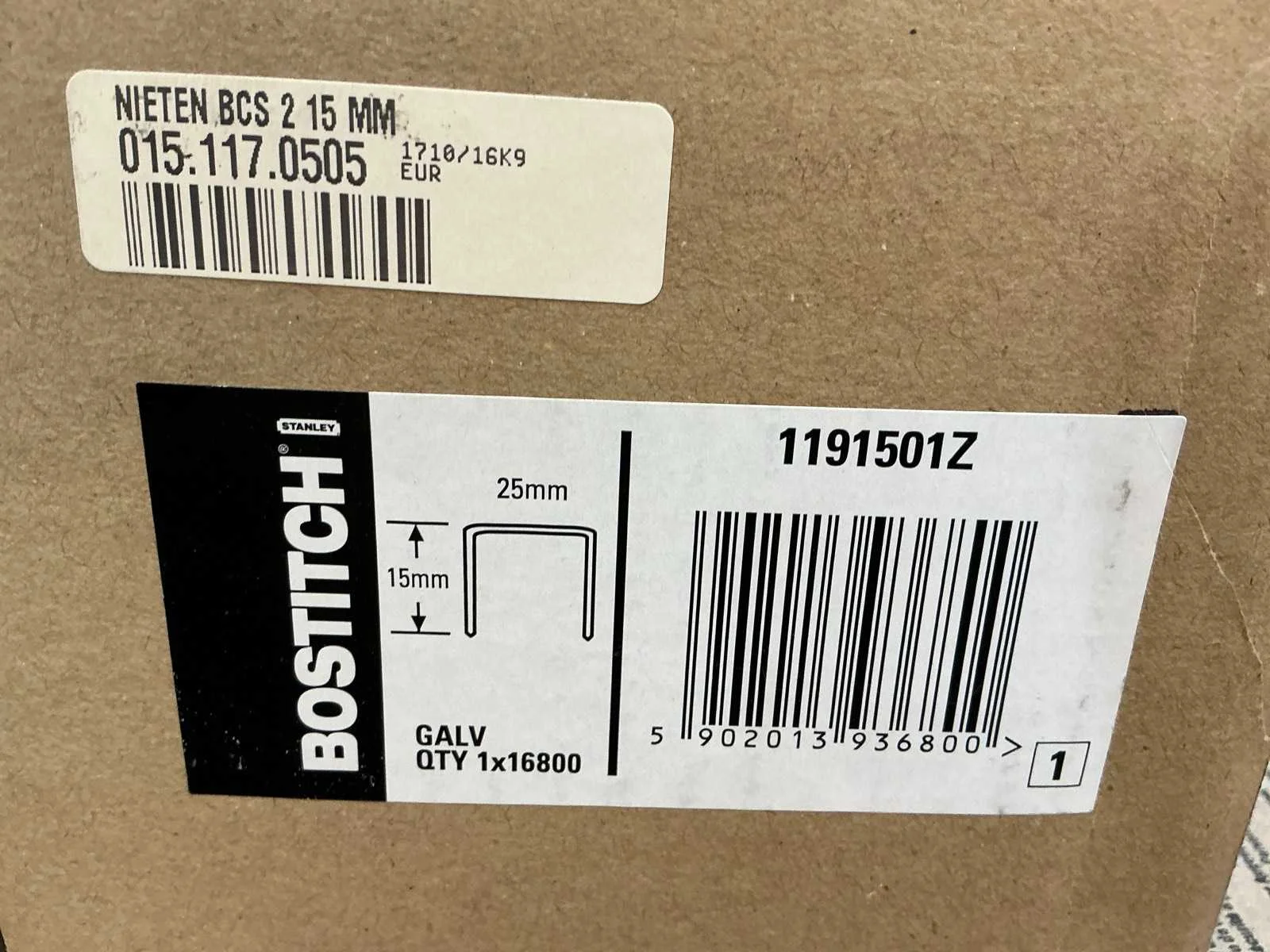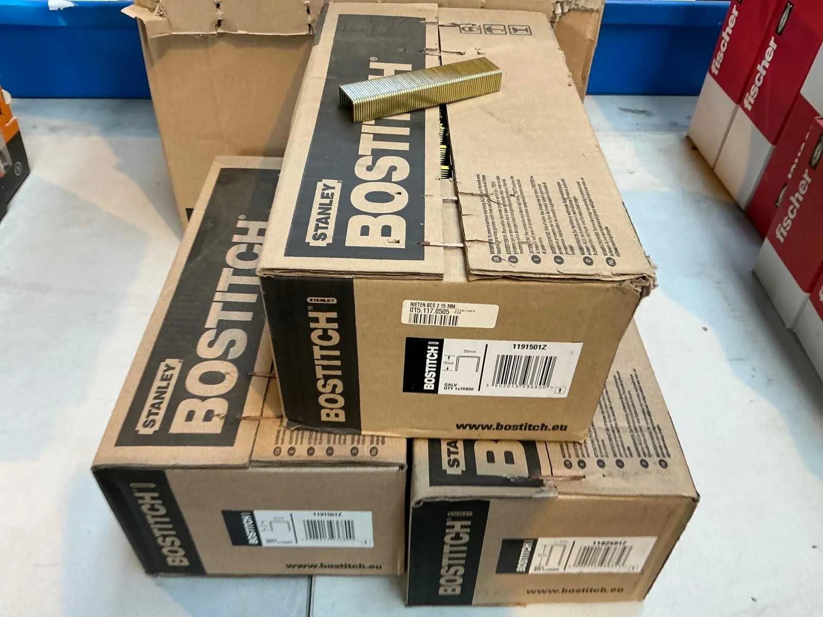 Bestaande uit 1 doos schietnagels, 3 dozen nieten Merk: STANLEY Type: Bostitch