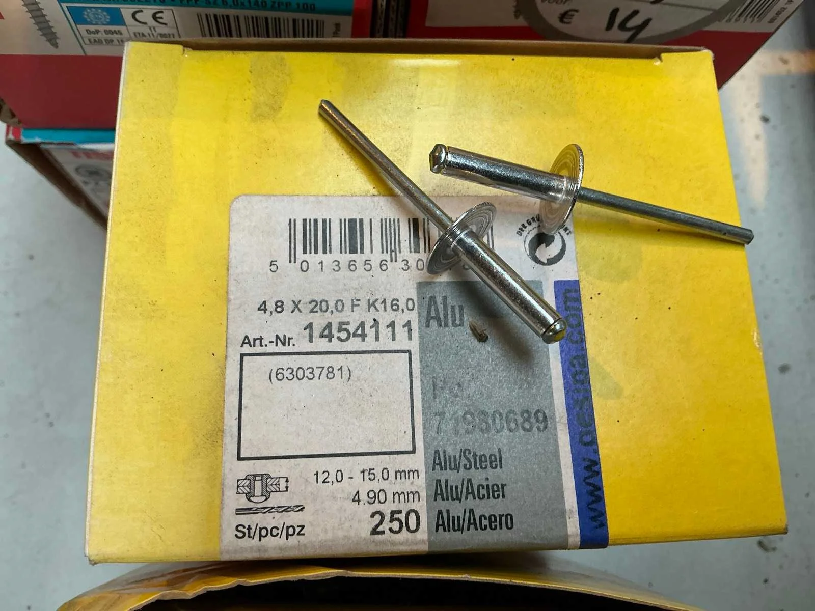 Bestaande uit 8 dozen schroeven 6,0x140 en 2 dozen blindnagel 4,8x20 Merk: FISCHER