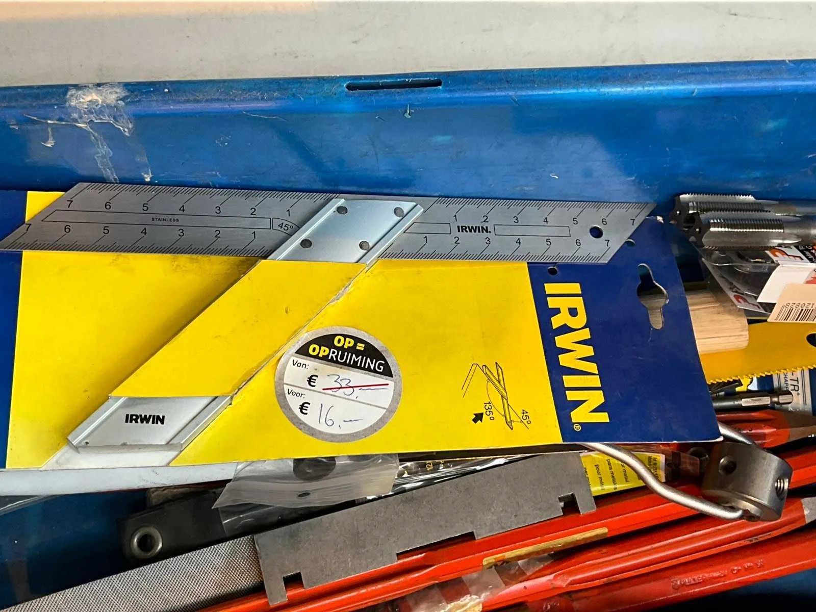 Waaronder beitels, inbussleutels, boren, lineaal en tapeinden.