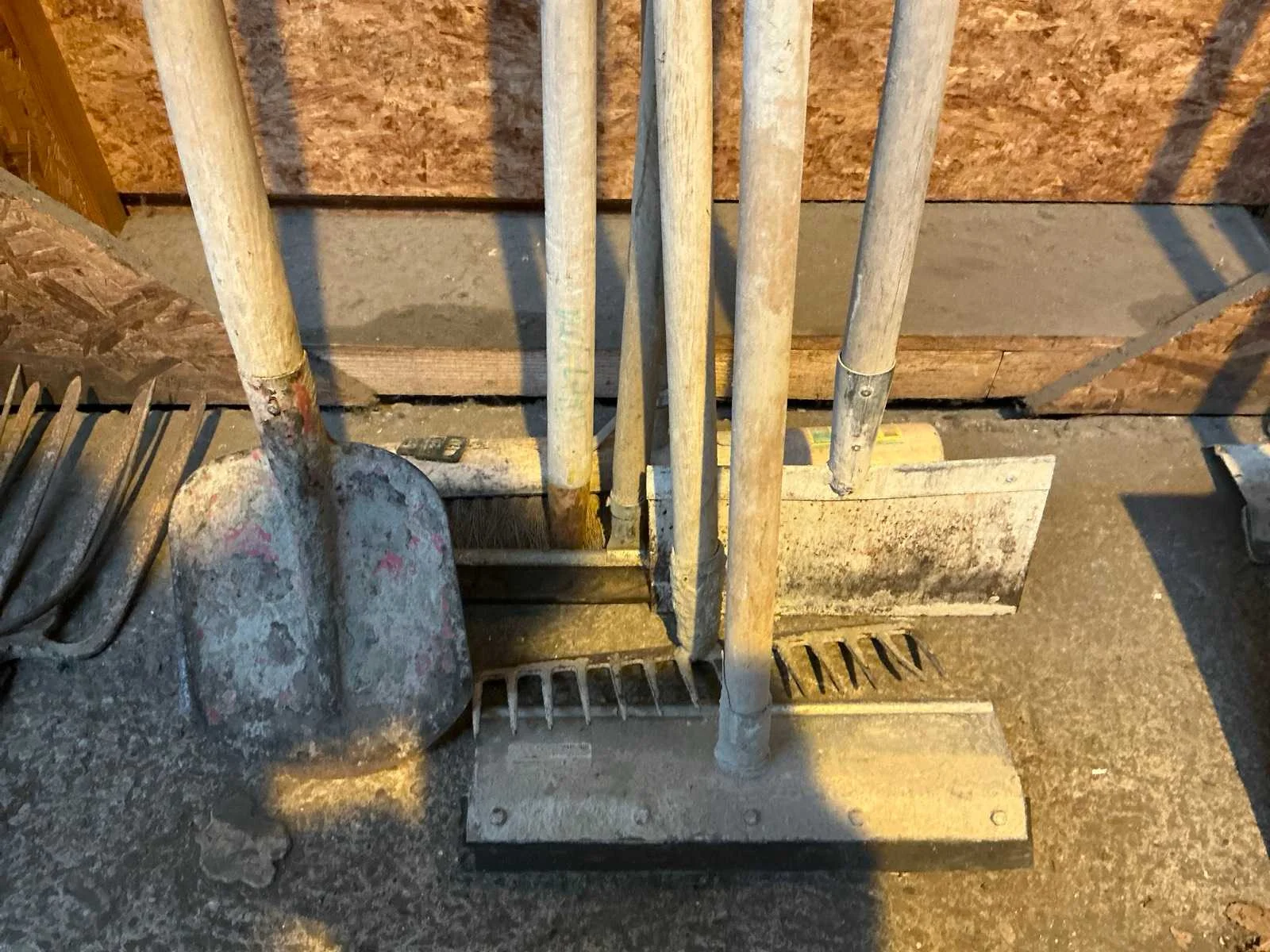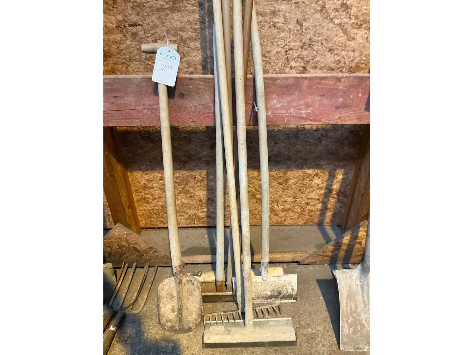 Bestaande uit bezem, hark en gereedschappen voor de betonbouw