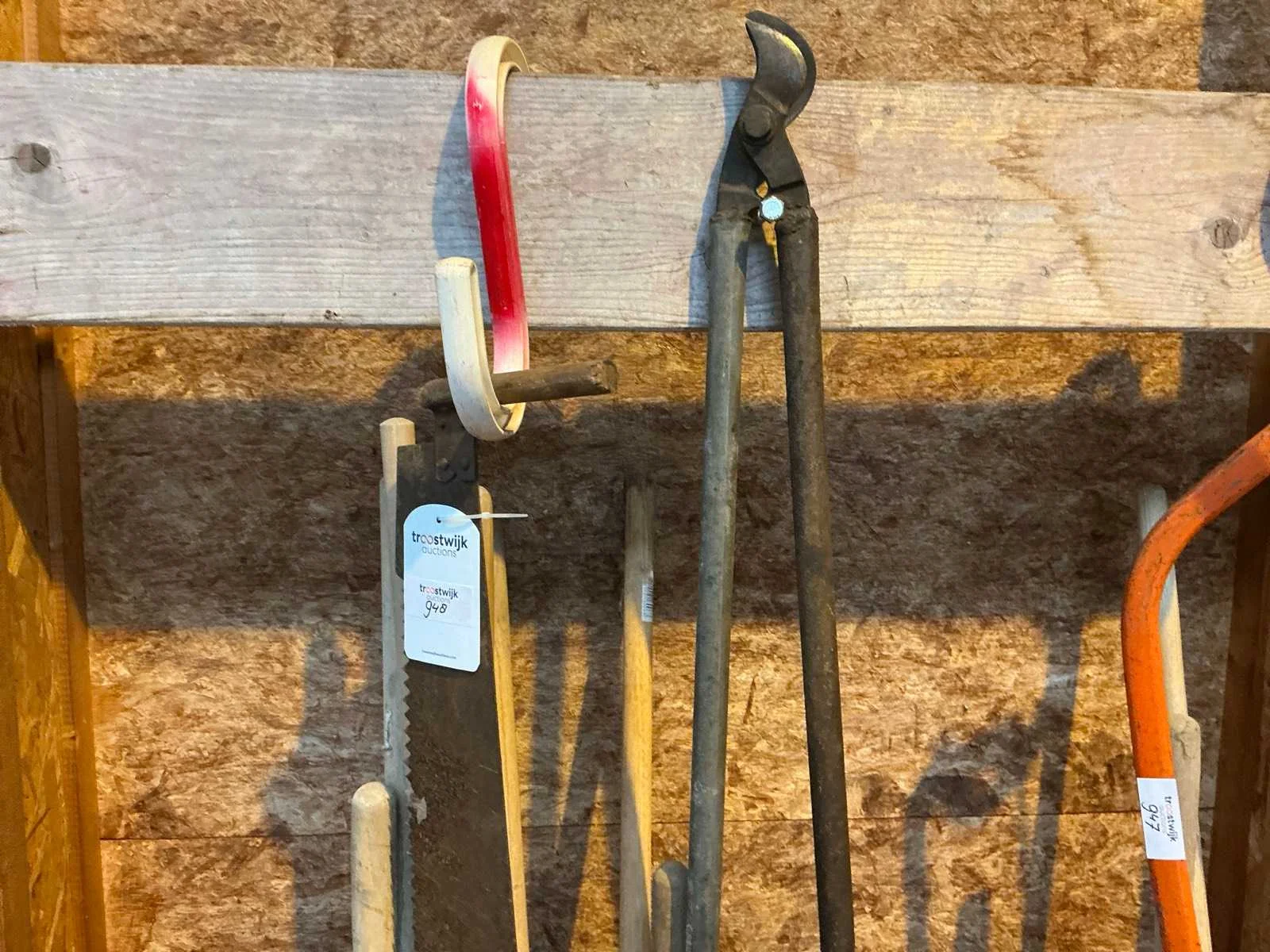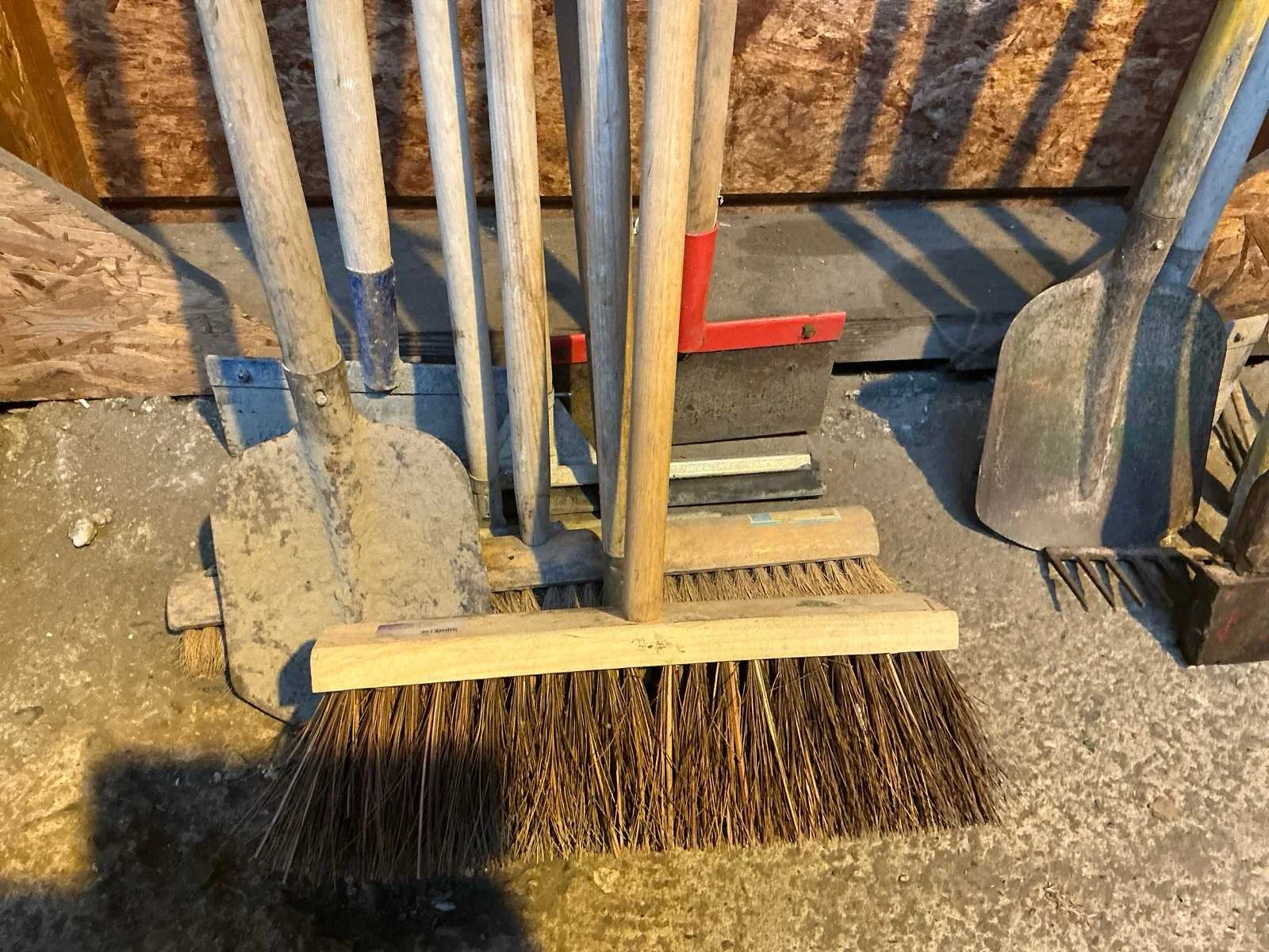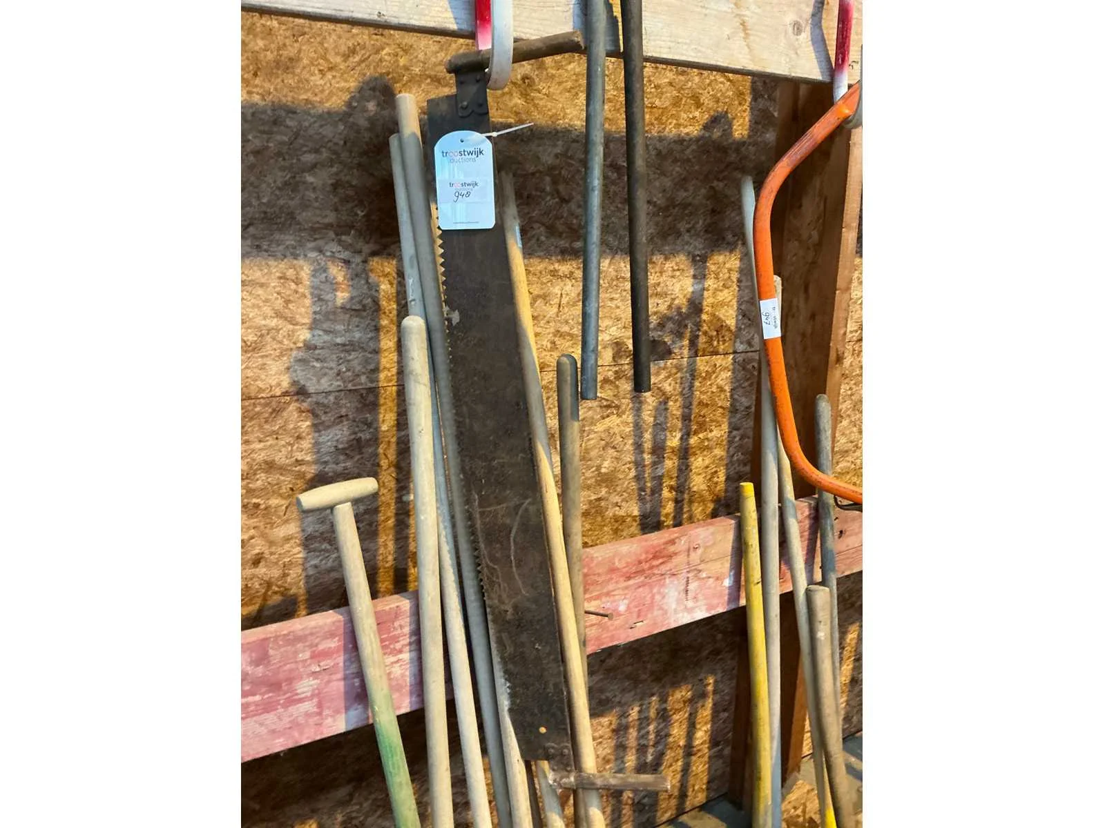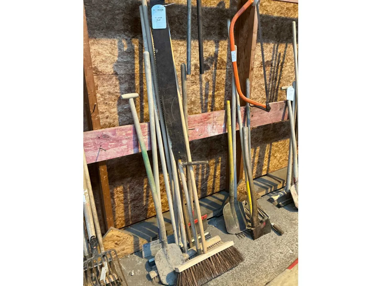 Bestaande hark, bezem, zaag en divers