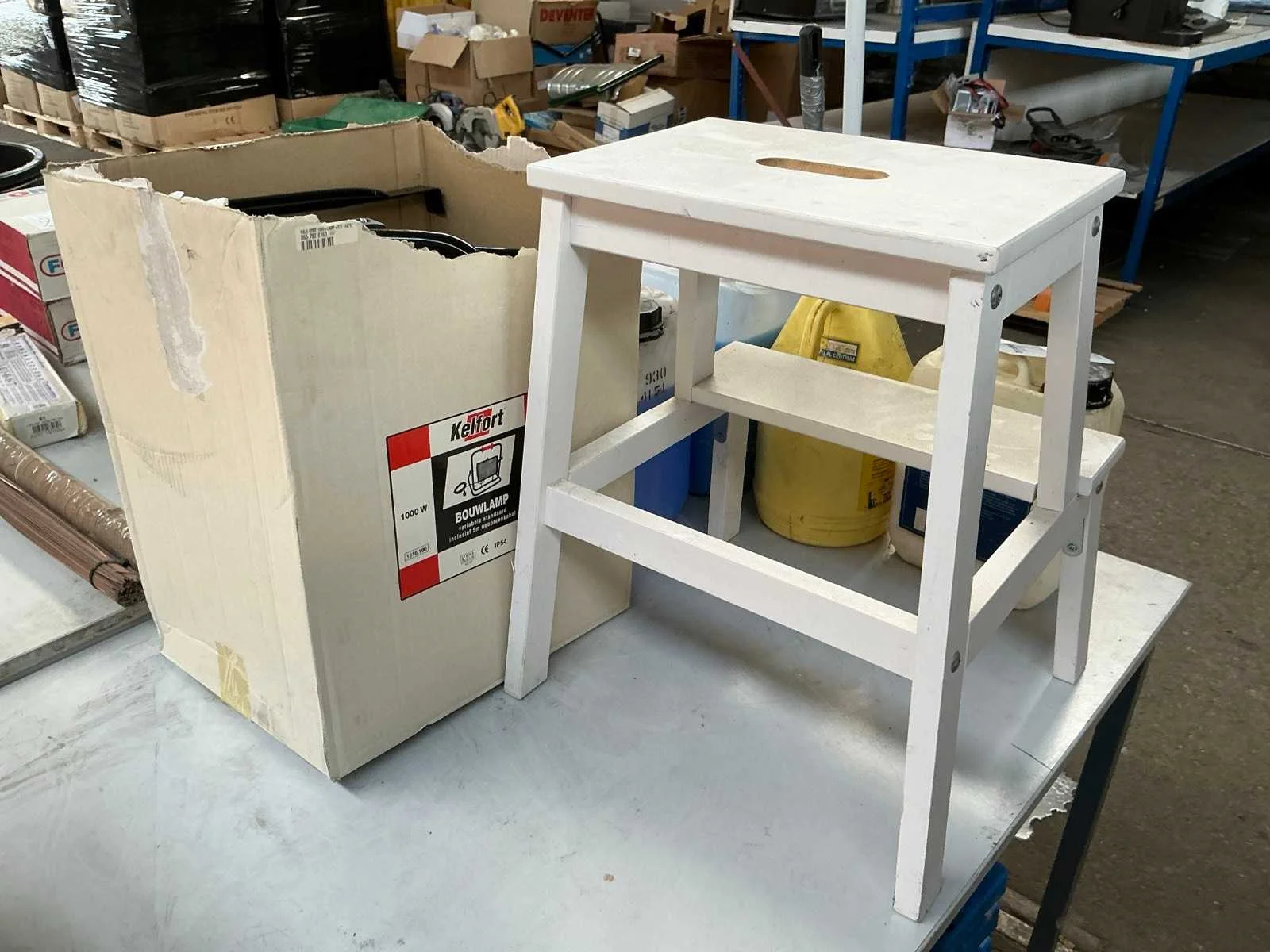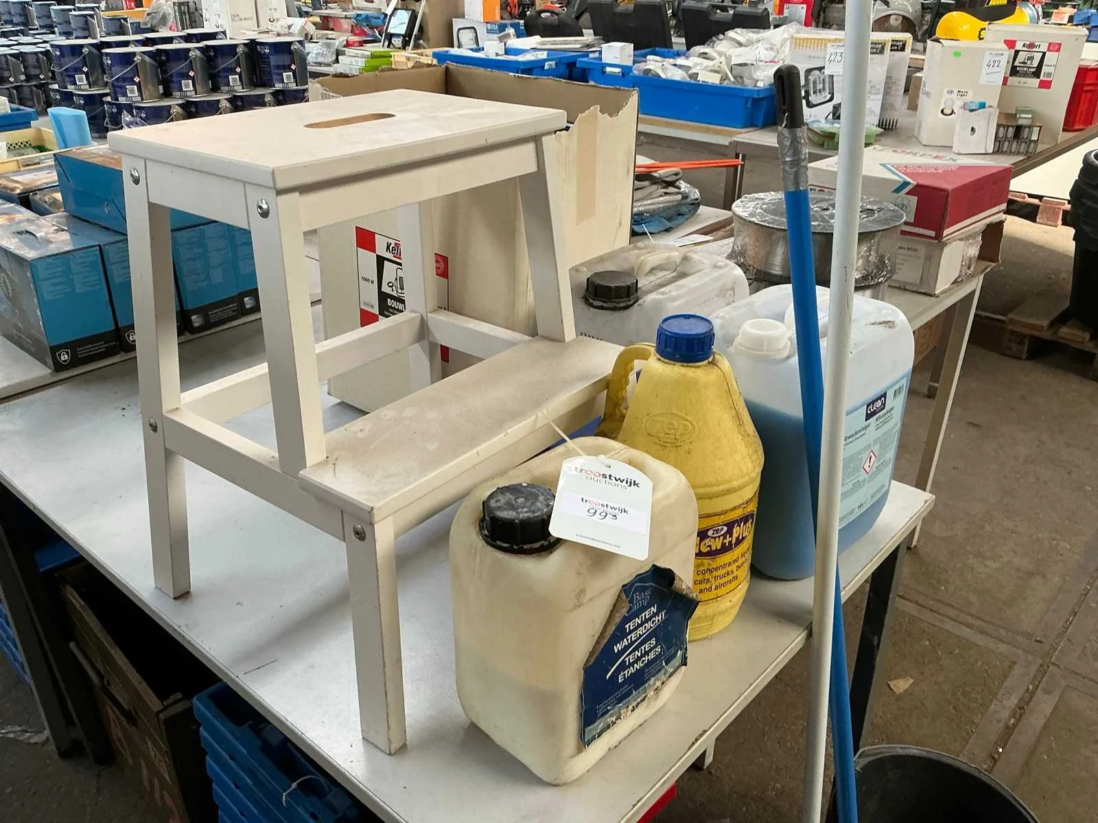 Waaronder allesreiniger, mop met emmer, opstap en Kelfort bouwlamp