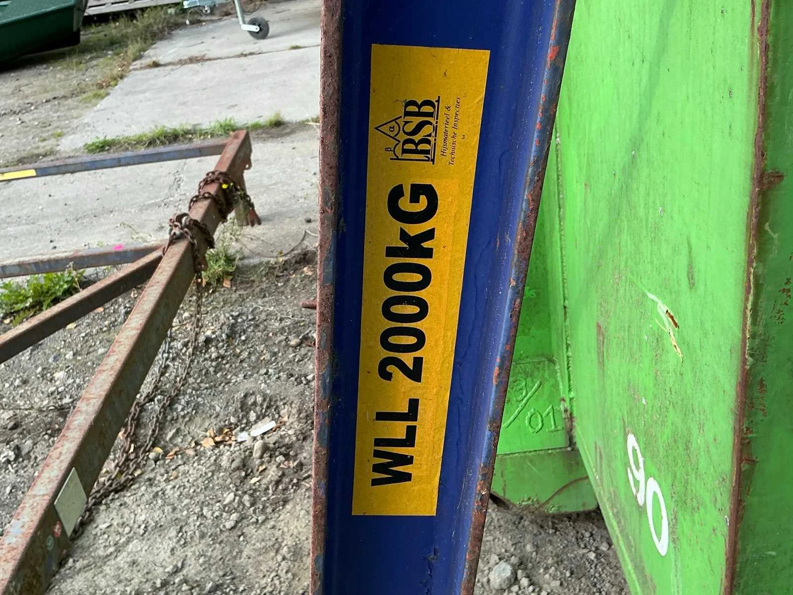 Hijsframe voor 6ft en 8ft containers Hijsvermogen: 2000kg Afmeting l: 2000mm Afmeting b: 2400mm Afmeting h: 100mm