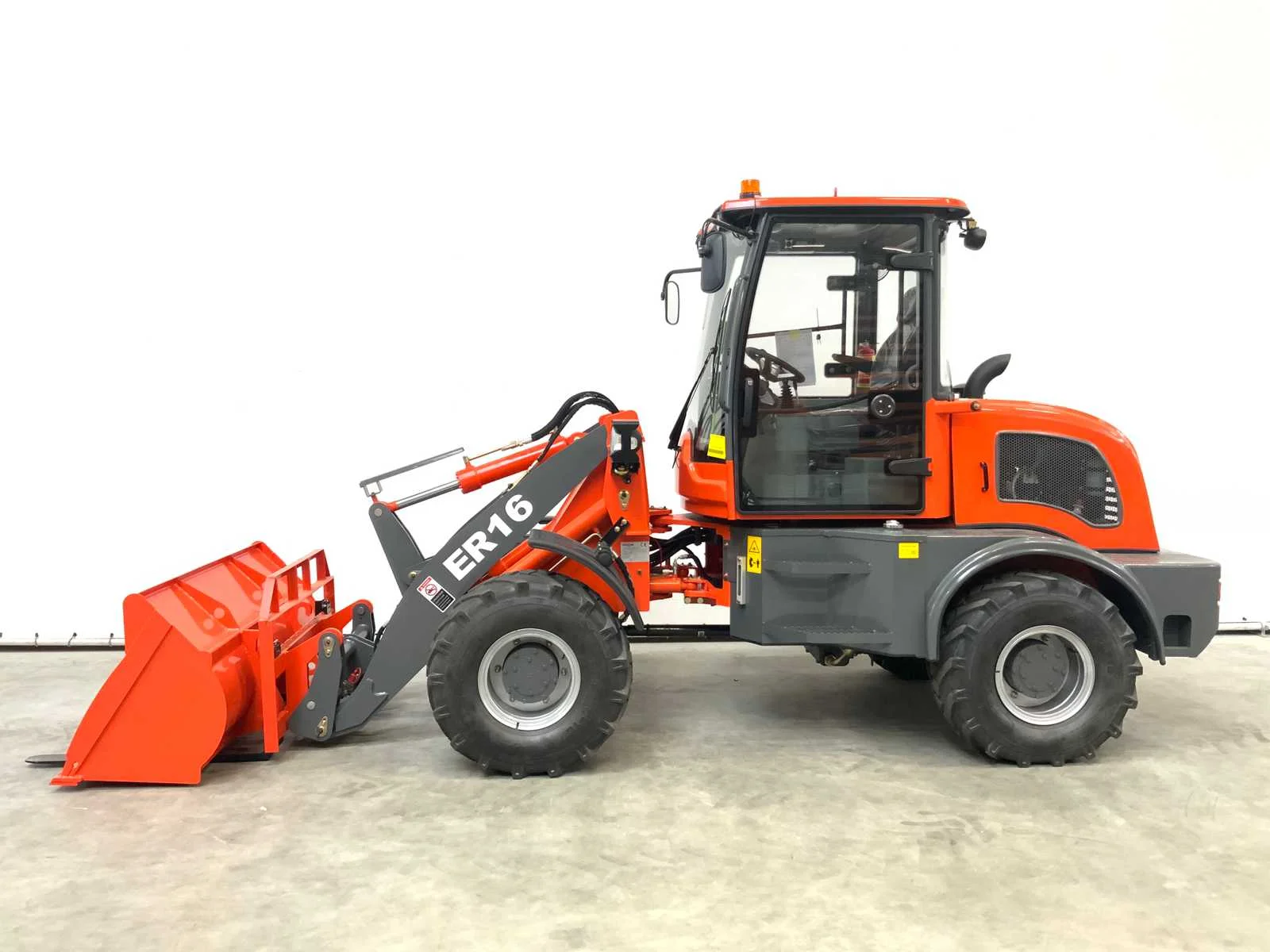 Hydraulische snelwissel; rated load 1600kg; maximale hefhoogte 2980mm; Motervermogen 50PK; Transmissie 2 versnellingen Torque Converter Max. rijsnelheid: 22 km/h; 4WD; Luxe volledig gesloten cabine; V.v. 1 deur; te openen raam; geveerde stoel; radio; ventilator en verwarming; Kantelbare cabine ivm vereenvoudigd onderhoud; graafbak van 0.80 m3 en palletvorken; totale afmeting met graafbak; 6152 Merk: Everun Type: ER16 Bouwjaar: 2025 Merk motor: XINCHAI A498 BT1 Motorvermogen (kW): 36.80kW Aantal cilinders: 4 Brandstof: Diesel Graafbak afm. b: 2000mm Bandenmaat: 23.5/70-16 Cabine: true Afgelezen urenstand: 1 Eigen gewicht: 3800kg Totale afmeting L: 5240mm Totale afmeting Breedte: 1900mm Totale afmeting Hoogte: 2600mm