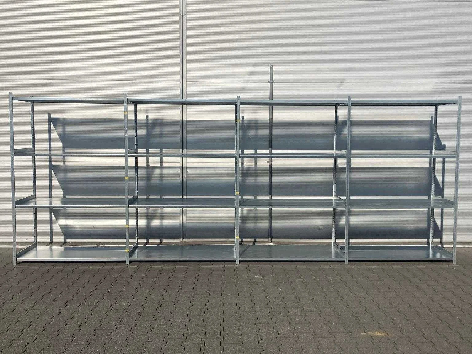 10x staander 2000x700mm; 32 legborden bestaande uit 2 delen 1280x300 en 1280x400mm; 7461*10/7462*32/7463*32 Merk: GS3 Sectie afm. b: 700mm Sectie diepte: 1280mm Sectie afm. h: 2000mm Aantal staanders: 10 Aantal legborden: 32 Demontabel: true