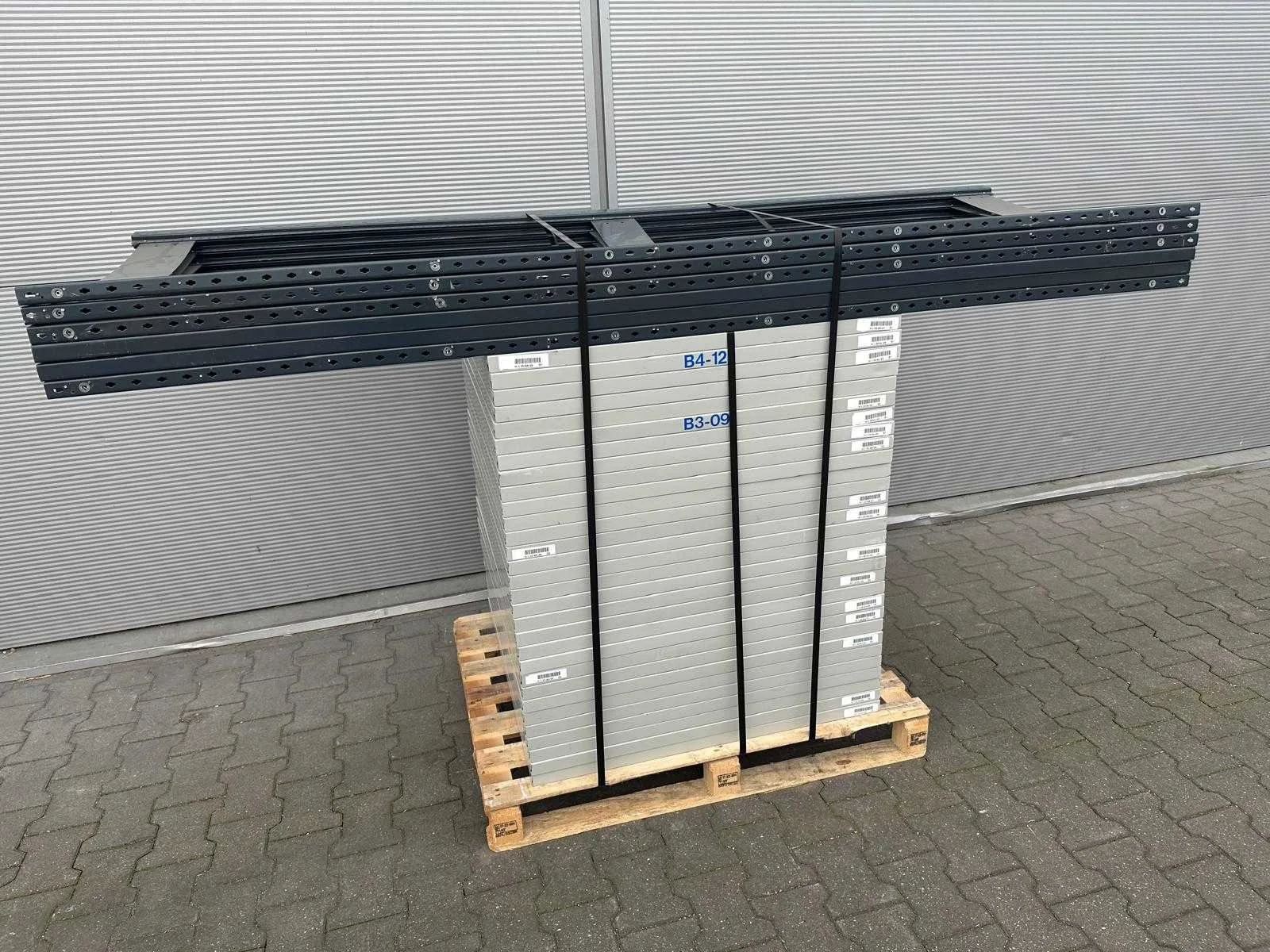Gebundeld; Gebruikt; 12x staander 2400x800mm; 60x legbord 870x800mm; 6827*12 / 6828*60 Merk: Bruynzeel Sectie afm. b: 800mm Sectie diepte: 870mm Sectie afm. h: 2400mm Aantal staanders: 12 Aantal legborden: 60