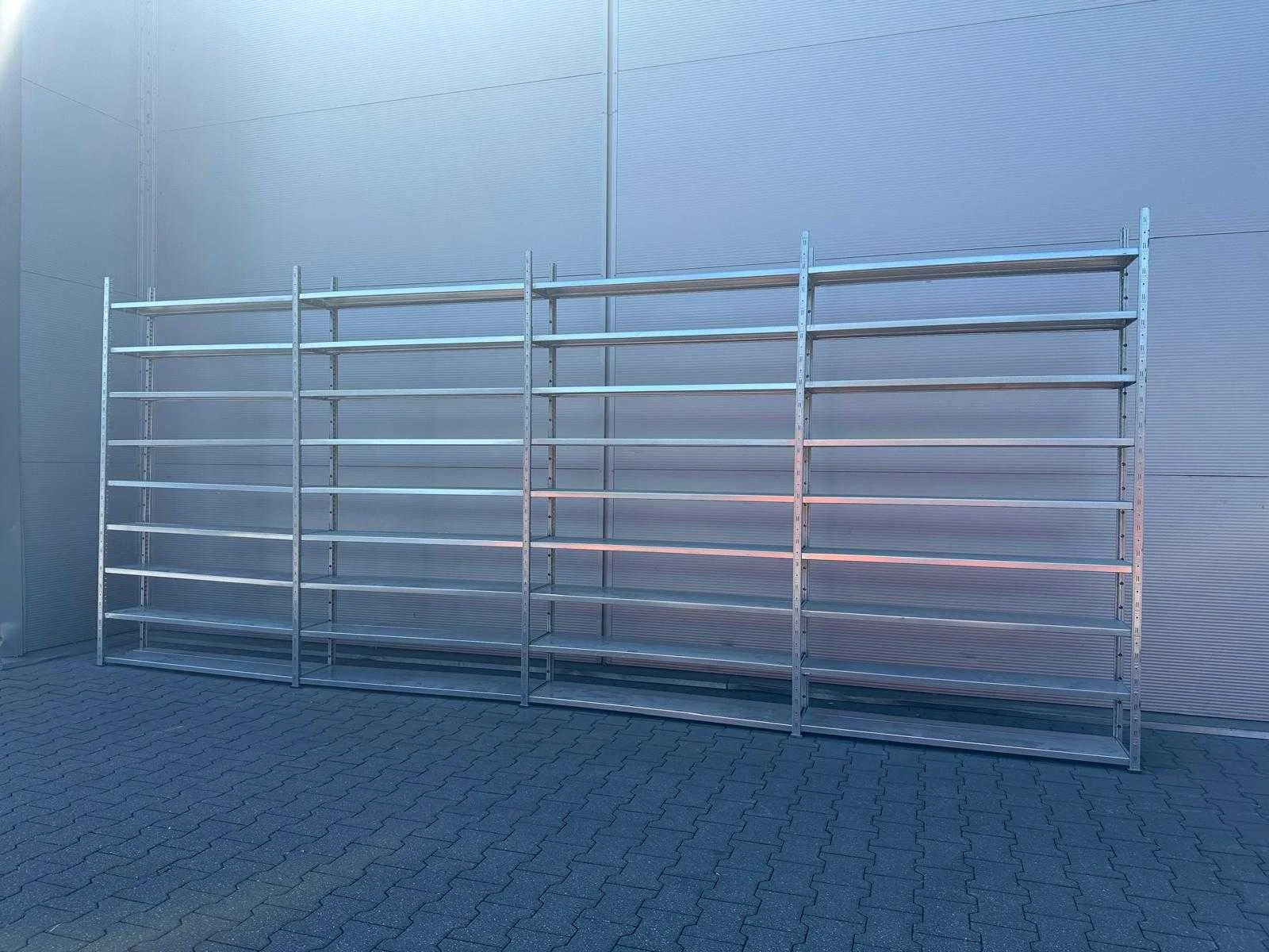 20x Staander 2200x300mm; 144x Legbord 1280x100mm en 72x legbord 1280x200mm; 7524*20 / 7526*144 / 7527*144 Merk: Errex Sectie afm. b: 300mm Sectie diepte: 1280mm Sectie afm. h: 2200mm Aantal staanders: 20 Aantal legborden: 144