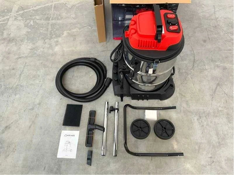 Ongebruikt in doos; met diverse toebehoren; v.v. 2 zwenkwielen; 60 liter capaciteit; 3825; Merk: Kremer Type: KR60L-4 Bouwjaar: 2024 Vermogen: 3400W Zakloos: true Nat/droog zuiger: true Stopcontact: true Aansluiting: 230V