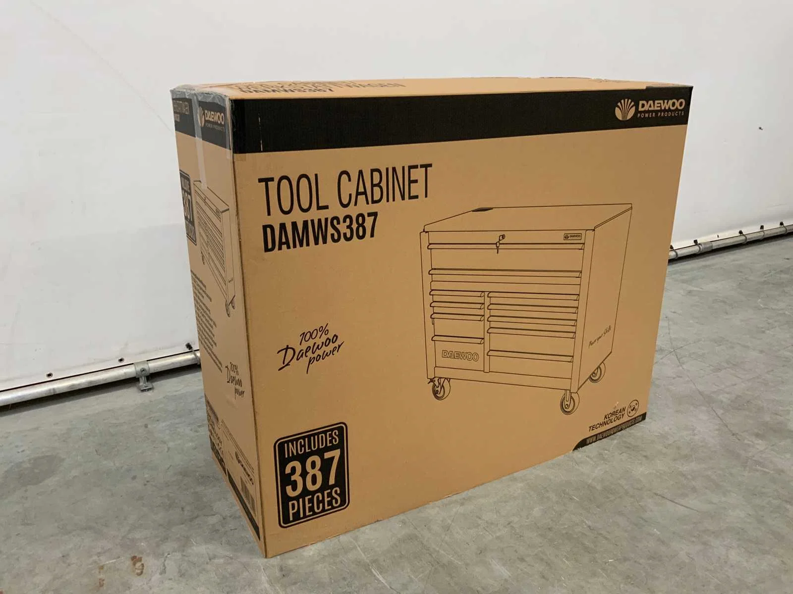 Ongebruikt; gereedschap in plastic verpakt; 12-delig tangenset; 13-delig hamerset; 14-delig meetset; 36-delig slagmoersleutel set; 21-delig sleutels met T-greep; 41-delig schroevendraaierset; 29-delig combinatiesleutels; 12-delig ringsleutels; 125-delig deppenset; 84-delig bitjes set; 6443 Merk: Daewoo Type: DAMW387