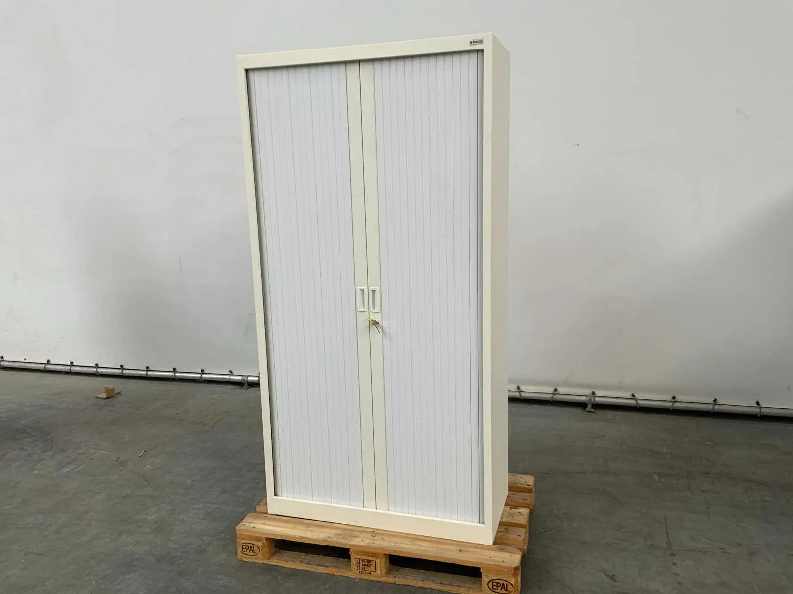 Kleur: wit ral9010, Voorzien van 3 legborden, in hoogte verstelbaar, Betreft een ongebruikte kast Merk: Povag Lengte: 45cm Breedte: 100cm Hoogte: 195cm