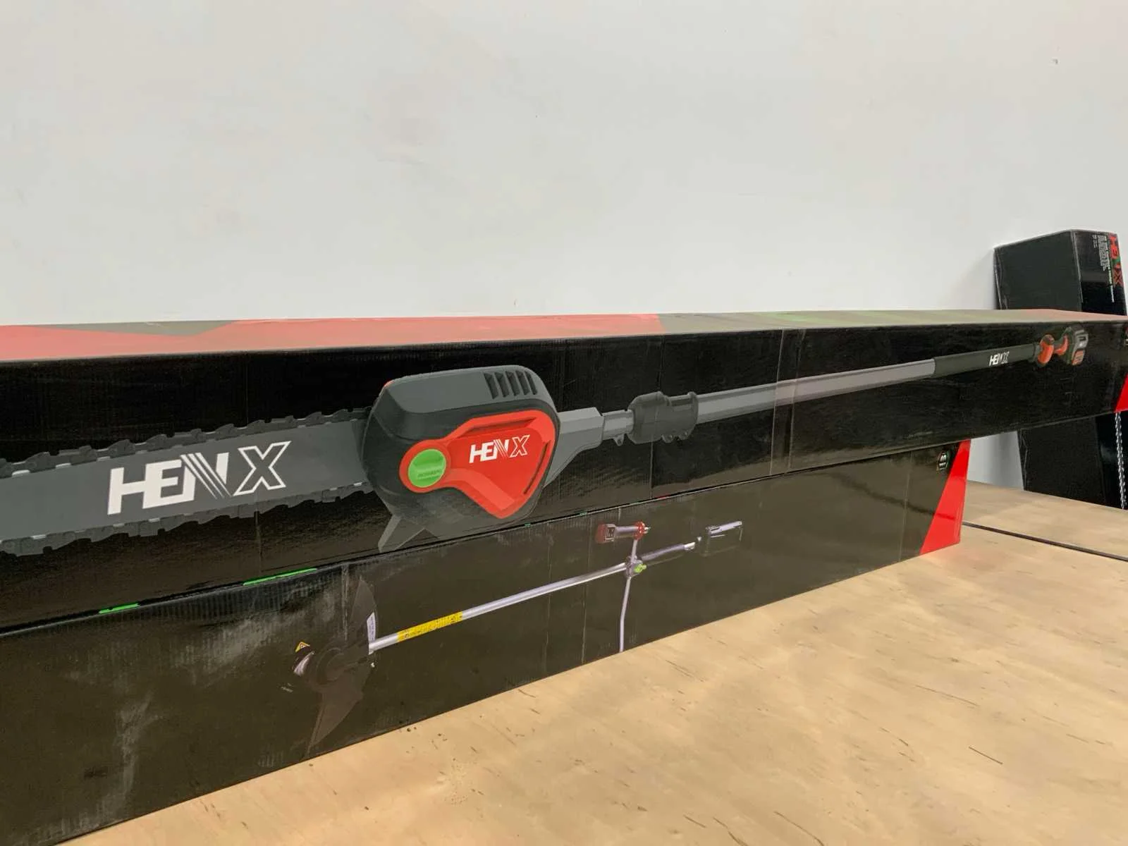 1 accu 2.5AH; 1x kettingzaag; 1x 2in1 bruschcutter; 40V batterij waist belt; Merk: Henx