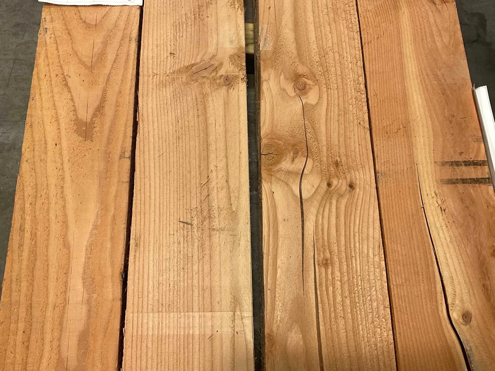 Mix kavel van 3 stuks Douglas balk ruw gezaagd, met een afmeting van 600 x 15 x 15 cm per stuk, én één Douglas balk ruw gezaagd, 300 x 15 x 15 cm dik