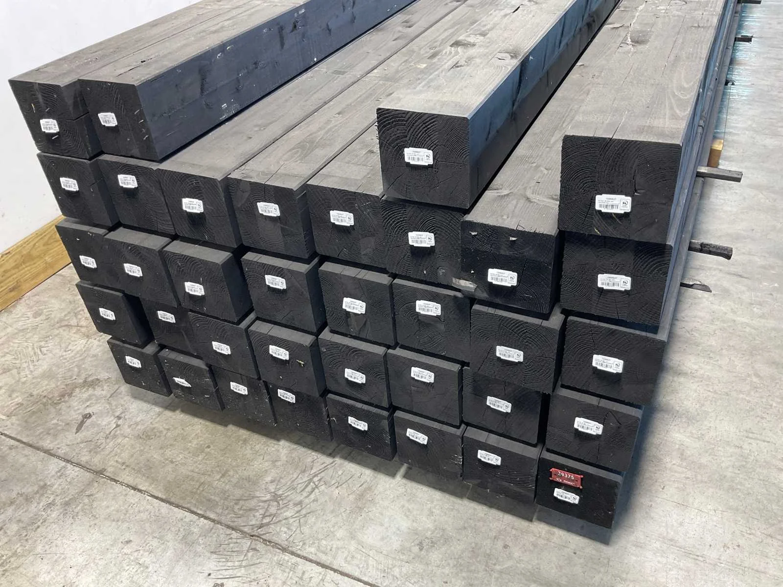 Vuren paal, geschaafd, verlijmd, zwart geverfd 5,00 x 12 cm x12 cm Lengte: 500cm Breedte: 12cm Hoogte: 12cm Materiaal: Vurenhout