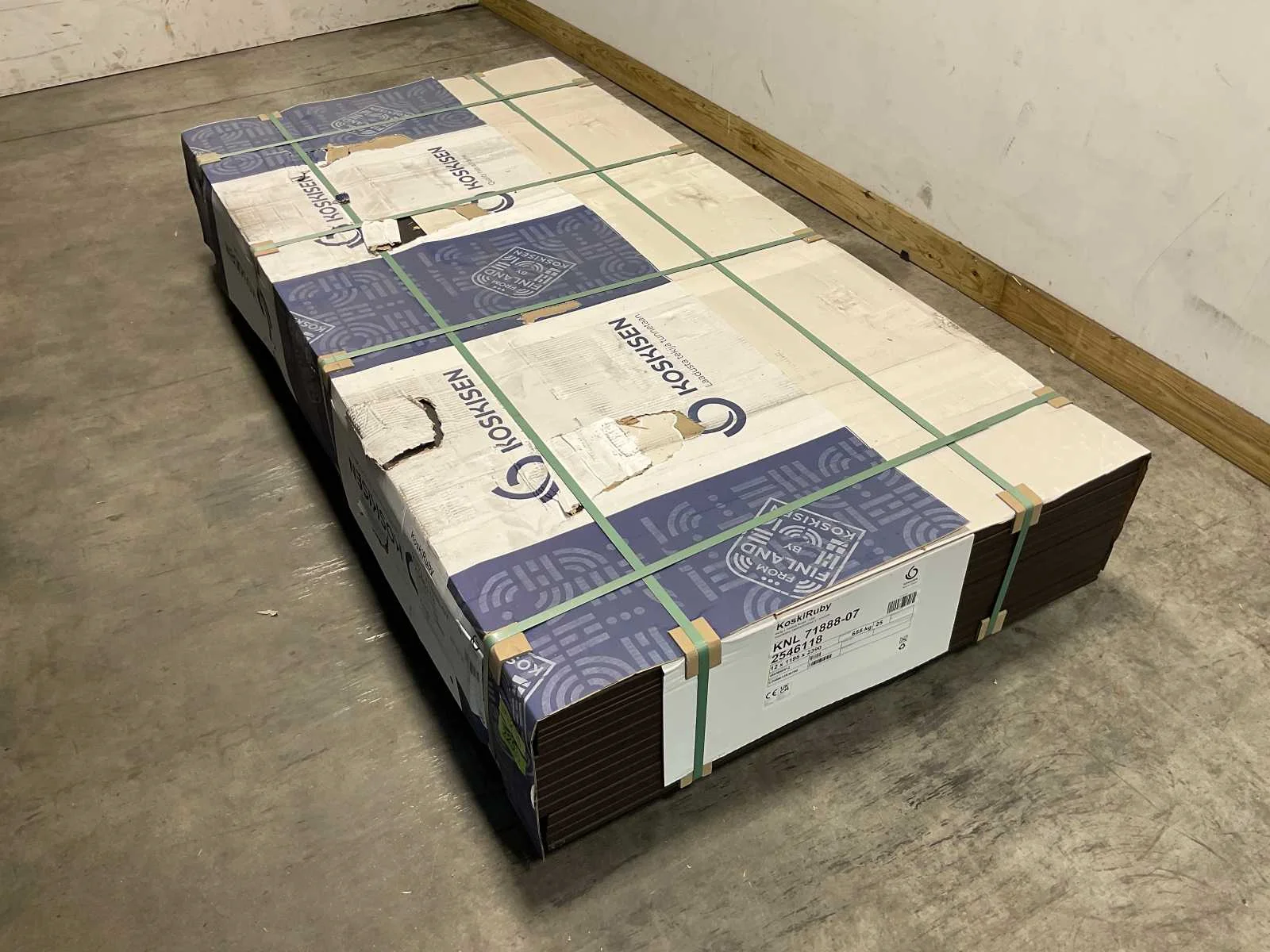 KoskiRuby plaat 2390 x 1195 x 12 mm. KoskiRuby is een duurzaam vloermateriaal met een harde slijtvaste overlay. Tijdens het coatingproces wordt er een antisliplaag in zeghoekig robijnpatroon op de filmlaag geperst 'hot pressed'. Het verhoogde antislip zeshoekige patroon behoudt zijn antislipeigenschappen onder een breed scala aan klimatologische omstandigheden omstandigheden, en daarom is KoskiRuby een ideaal materiaal voor veeleisende bevloering. KoskiRuby is speciaal geschikt voor steigers, laden, platforms, podia, tribunes, terrassen, sport, speeltuin faciliteiten en aanhangwagens. Voordelen van KoskiRuby multiplex: Hoog draagvermogen Slijtvast oppervlak Slipvast oppervlak Milieuvriendelijk gedurende de gehele levenscyclus Lengte: 2390mm Breedte: 1195mm Hoogte: 12mm