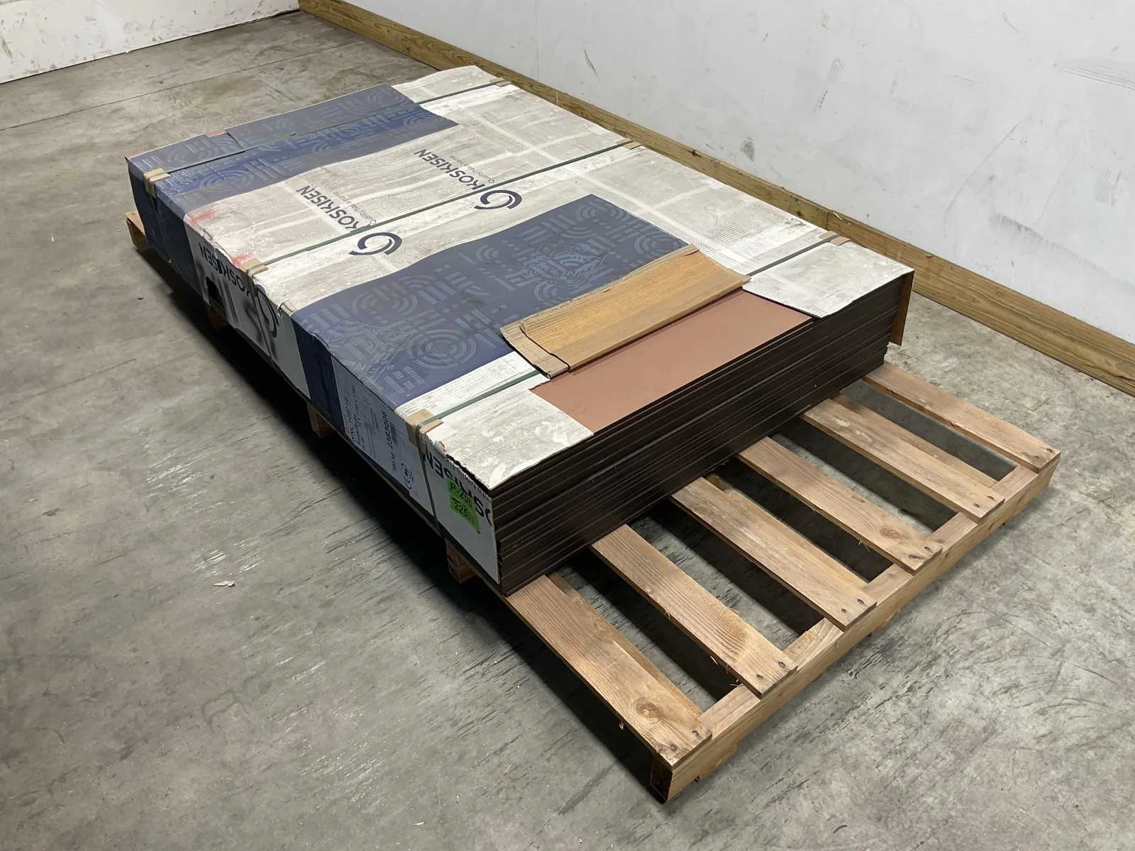 KoskiRuby plaat 1792 x 1195 x 12 mm. KoskiRuby is een duurzaam vloermateriaal met een harde slijtvaste overlay. Tijdens het coatingproces wordt er een antisliplaag in zeghoekig robijnpatroon op de filmlaag geperst 'hot pressed'. Het verhoogde antislip zeshoekige patroon behoudt zijn antislipeigenschappen onder een breed scala aan klimatologische omstandigheden omstandigheden, en daarom is KoskiRuby een ideaal materiaal voor veeleisende bevloering. KoskiRuby is speciaal geschikt voor steigers, laden, platforms, podia, tribunes, terrassen, sport, speeltuin faciliteiten en aanhangwagens. Voordelen van KoskiRuby multiplex: Hoog draagvermogen Slijtvast oppervlak Slipvast oppervlak Milieuvriendelijk gedurende de gehele levenscyclus Lengte: 1792mm Breedte: 1195mm Hoogte: 12mm