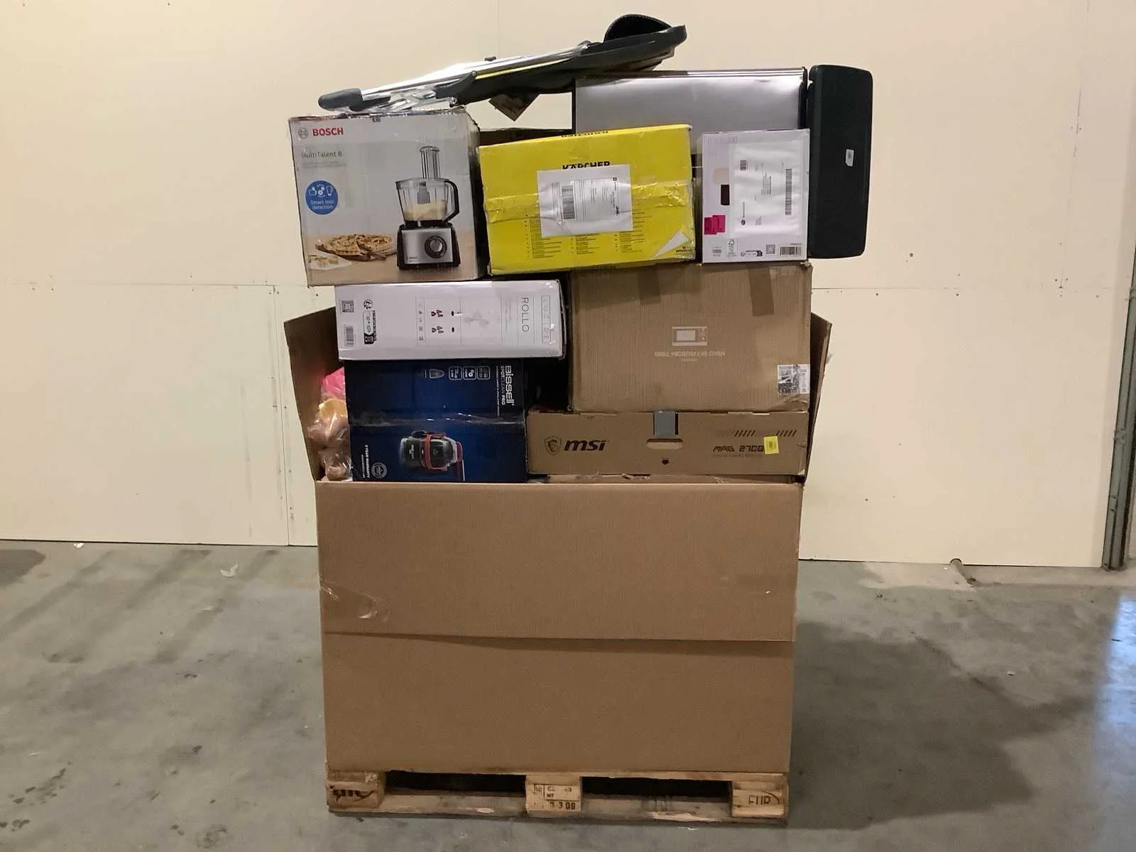 Dit betreft een partij A-merk retourgoederen van een grote online retailer. De partij bestaat uit diverse productcategorieën. Aantal stuks: 30. Retailwaarde: €3899,- Ongecontroleerd: werking onbekend (mix van werkend, incompleet, beschadigd, te gebruiken voor onderdelen). Kom op de kijkdag om te om zo een goed beeld te krijgen van de reden van retour. Zie foto's voor lijst met inhoud. Bezorgtermijn 14 dagen Merk: Pallet Retourgoederen