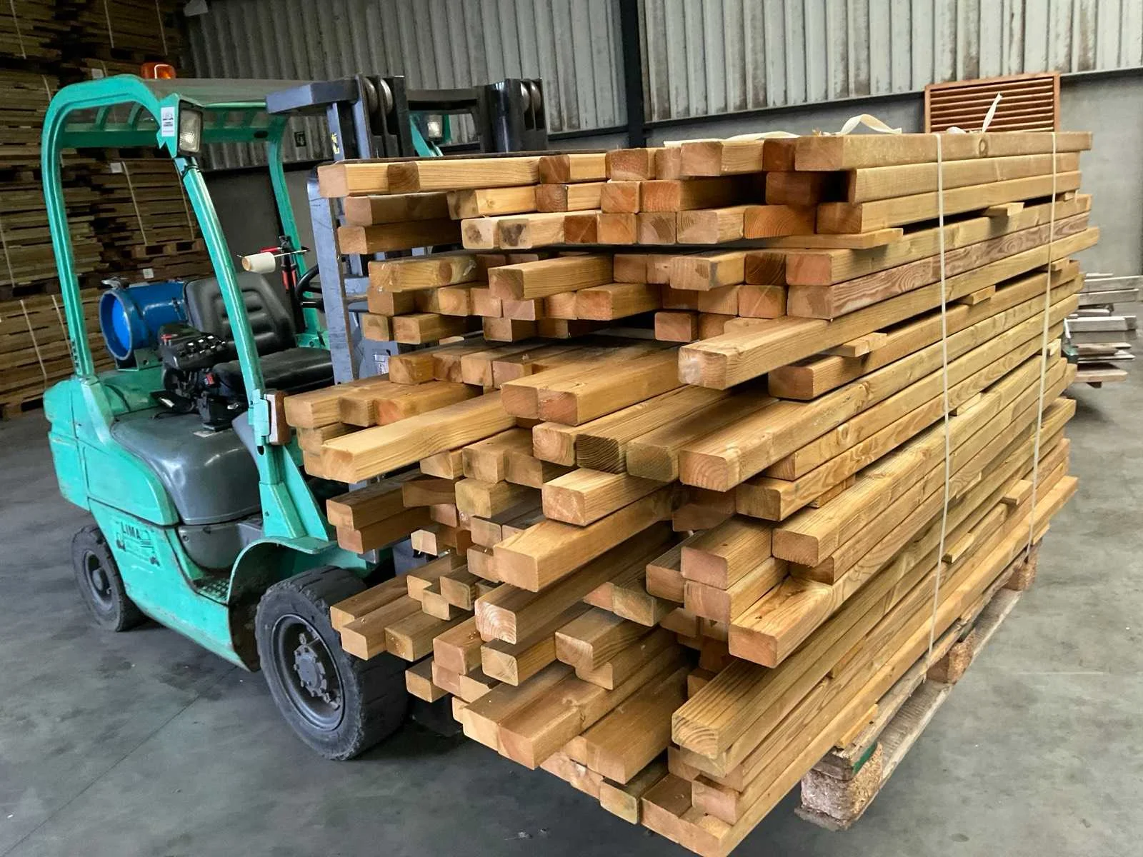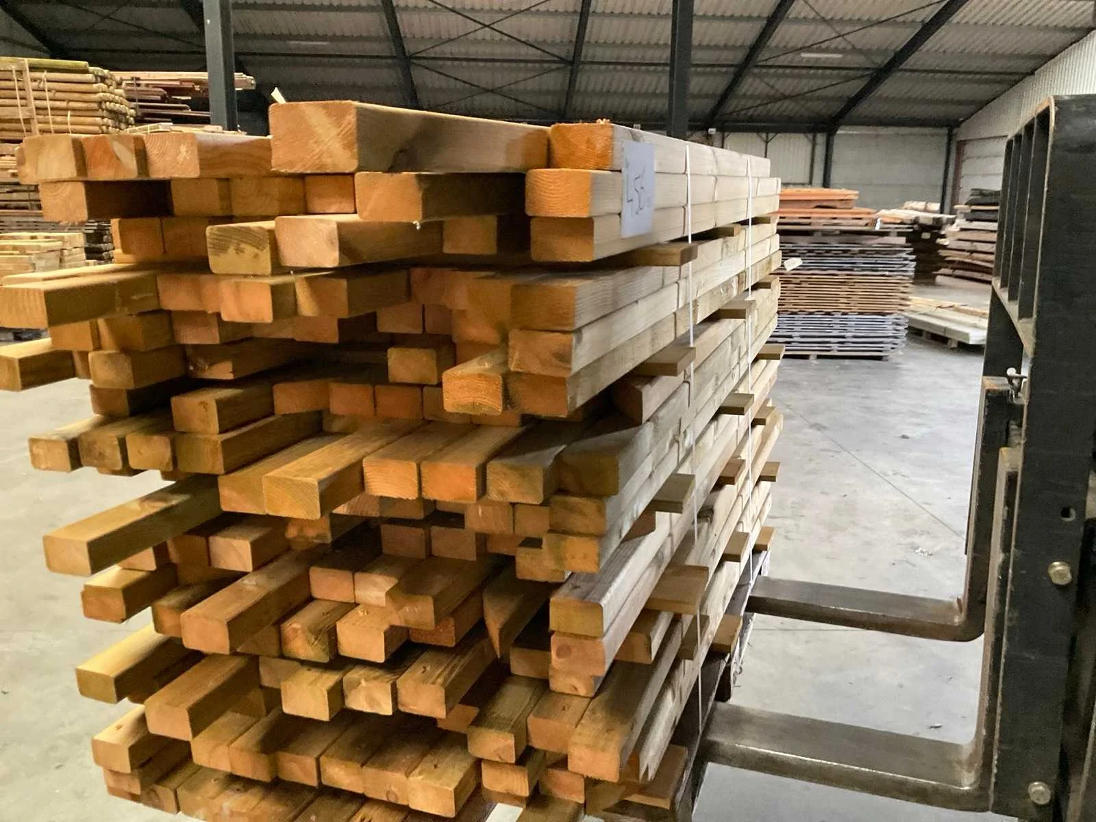 Partij grenen geïmpregneerde balken 80-180x6,5x4,5 cm. Bestaat uit diverse lengtes 80-180cm, in totaal ca. 250 lopende meter. Zie foto's voor details. Houtsoort: Grenenhout geimperneerd Kopmaat: 45x65 Gewicht: 400kg